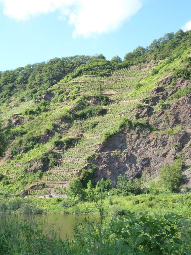 Now, to bring a meandering, watery story back to its beginning and the irrigation of fields, the thing that ties all of these threads together (Rome, Iran, Mary, Christ, and the Bishop of Mainz) is the grape (an agricultural product), and the slopes on which it is grown. The ancient water of the earth that flows through Mary into Christ and into His pilgrims also flows through the slate that some people might call soil and into grapes, and there reveals itself as wine. Below is an image of the site of the Qanat, to give you an idea of how it all looks. This is where the grapes are keeping up the old work.