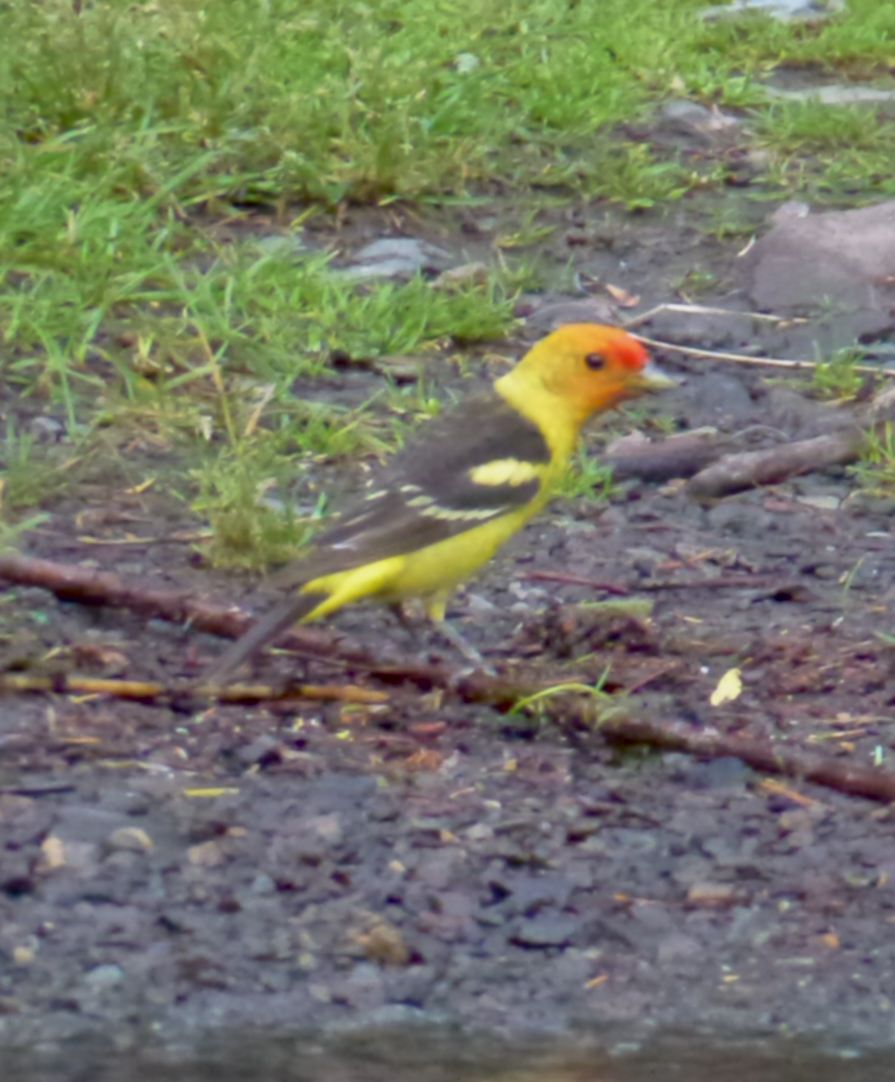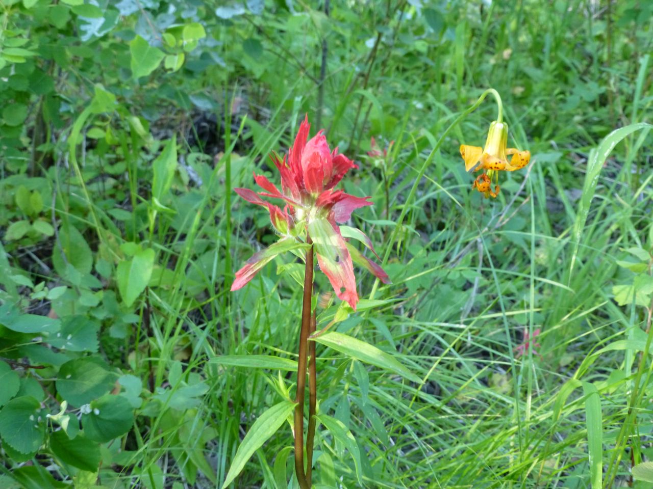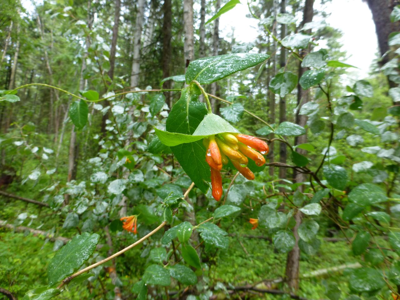 1. The Western tanager is gorgeous, whether you call it bird or flower. I think the orange flower you ask about must be a species of honeysuckle. The tubular flower shape and joined-up opposite leaves certainly seem to indicate that. Hope this helps!