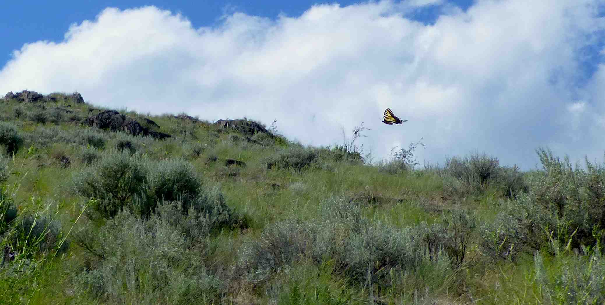 It’s not that the butterfly is flying, but that it has caught the flight of the universe and rides it. This means of thought likely sounds poetic to contemporary ears, but remember this: the language holds the capacity to think like this, because it is at heart formed by this kind of thought. In words we all know there is a profound bridge between “modern” and indigenous thought. What’s more, if the language maintains this capability, so do all people who speak it. For instance, the needle-and-thread grass, yarrow and the mariposa lilies below don’t bloom and fruit, but enter the bloom and fruitfulness of the universe…