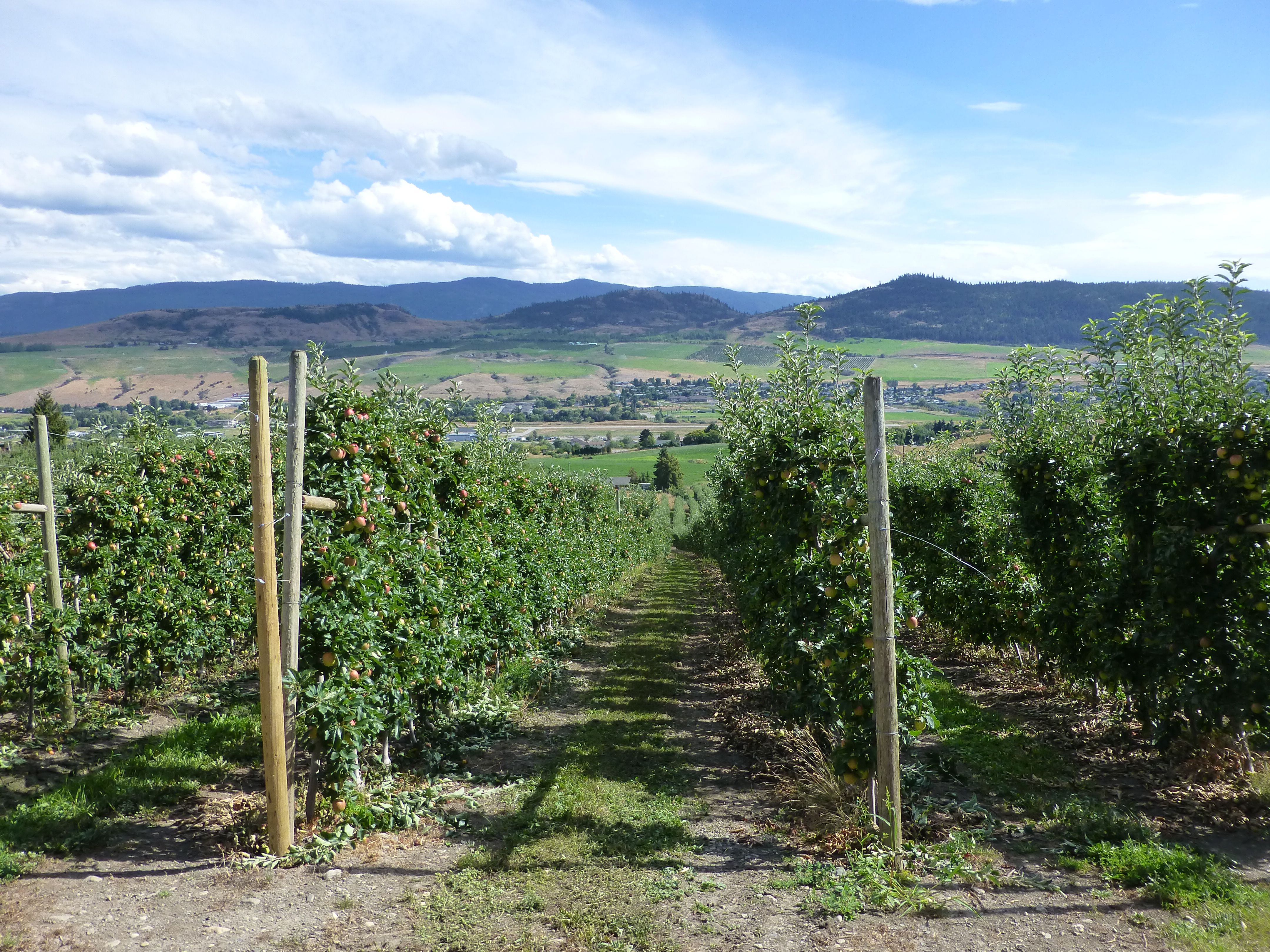 Each tree is a single stem, grafted to a dwarf rootstock that also gives jumbo-sized fruit, and is a carefully balanced creation of finely-measured fertilizers put through the watering system. No wonder they taste like plastic. As for the colour, well, all those fertilizers suck at bringing colour to fruit, which needs cool nights and lots of sun. See…