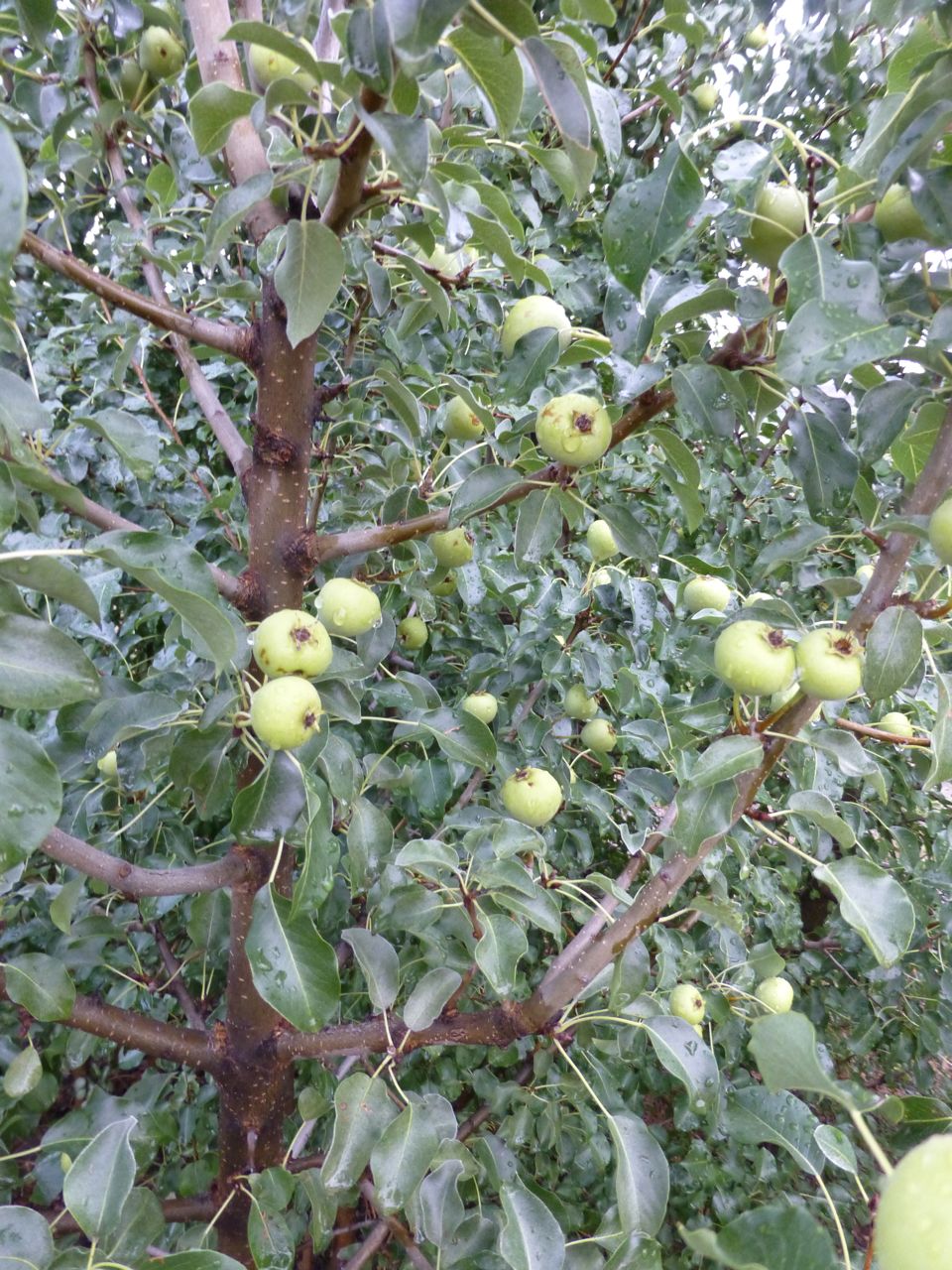 Those varieties still exist! (or many of them, at any rate.) Just not in Western North America… except for my little gem of a tree, whatever variety it is. I suspect it’s a seedling and we can name it. Any suggestions? By the way, the story goes on for 20 pages. It’s really about peace. i.e. not war, but peace. Through pears!