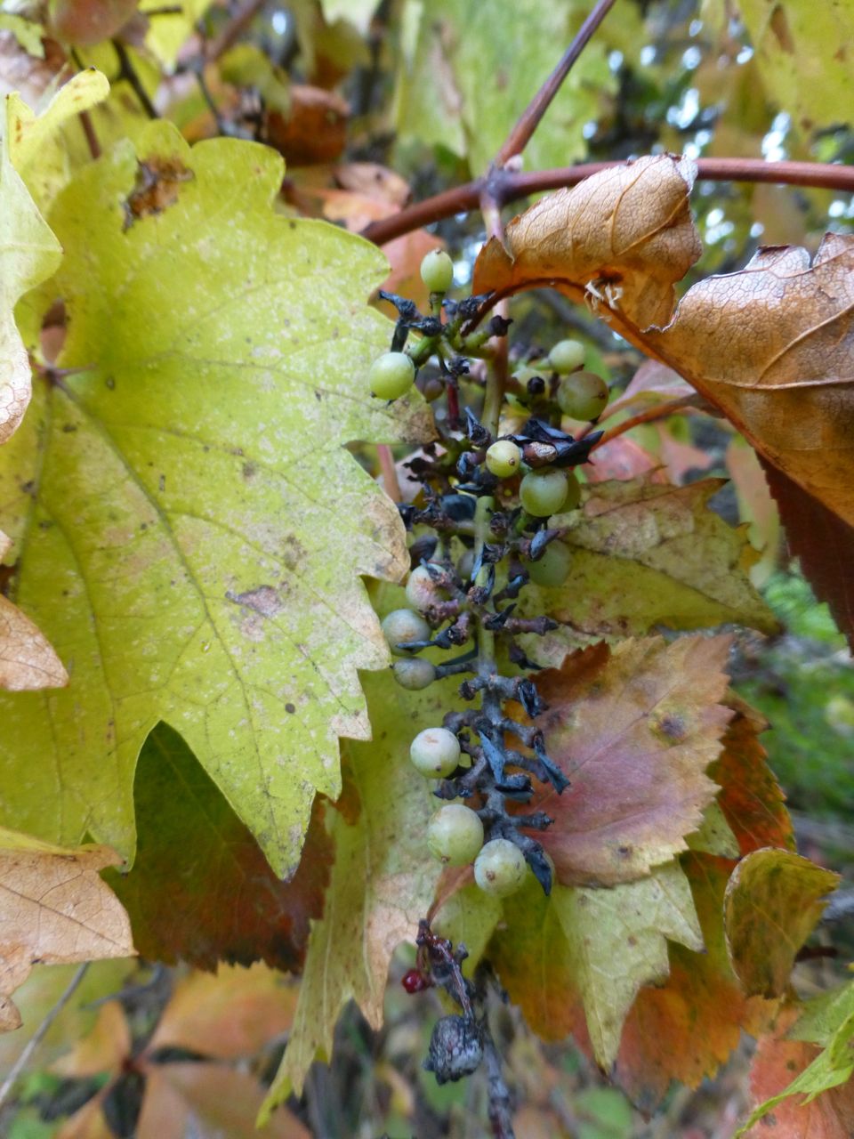 As you can see, they have a wide variety of maturities. What does it mean for wine? I wondered. What does it mean for the plant? There are no answers, because scientists are concerned about very practical issues around the story of wine-making and these, being wild grapes, are outside of that story. Or are they? Look at them now…