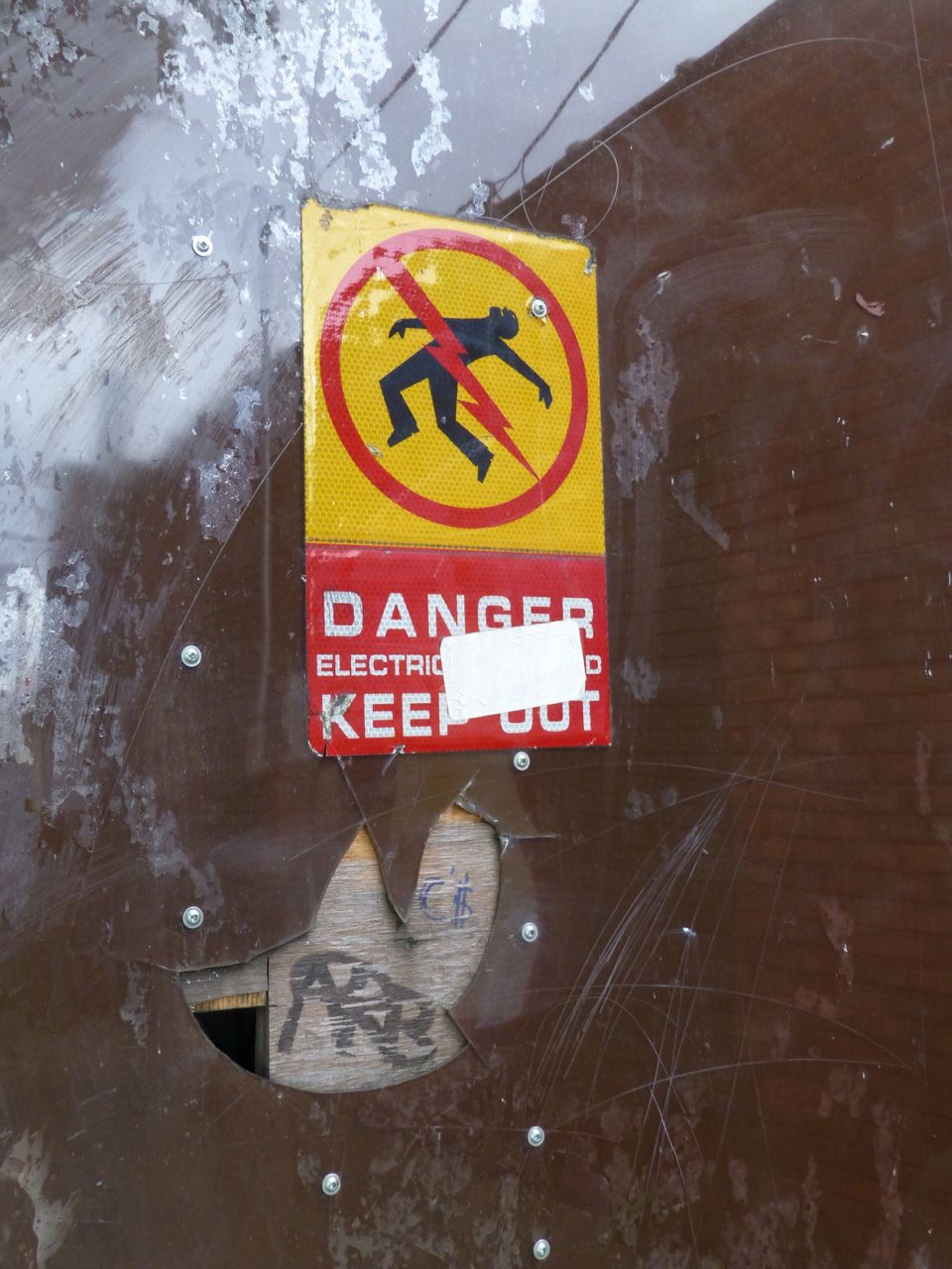 Notice the barricades, and the power post done completely to code, as well as the wooden power pole in the foreground, tested regularly for rot (the little white circles plug the test drill holes.)