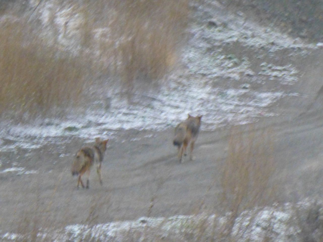 To say that this is a projection is a projection. In traditional knowledge in this place, Coyote, or Sen’klip, is the trickster and the transformer. Human consciousness and identity was learned here from him. For those of us who are this place and are from this place, he is us. To take a critical stance on that is to miss it. Here’s the second of those coyotes beginning the climb up the mountain.