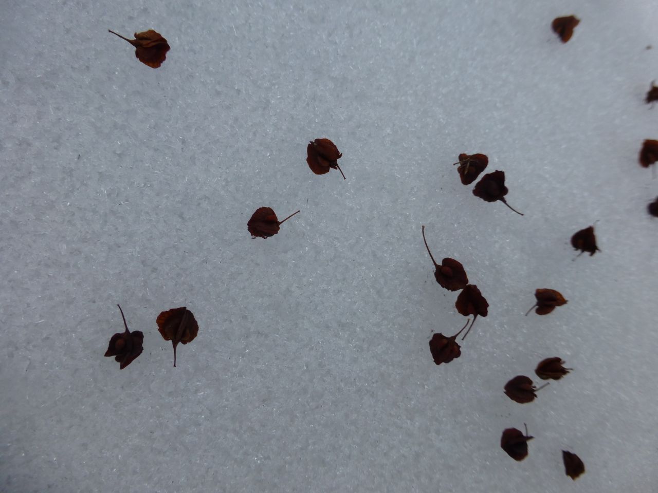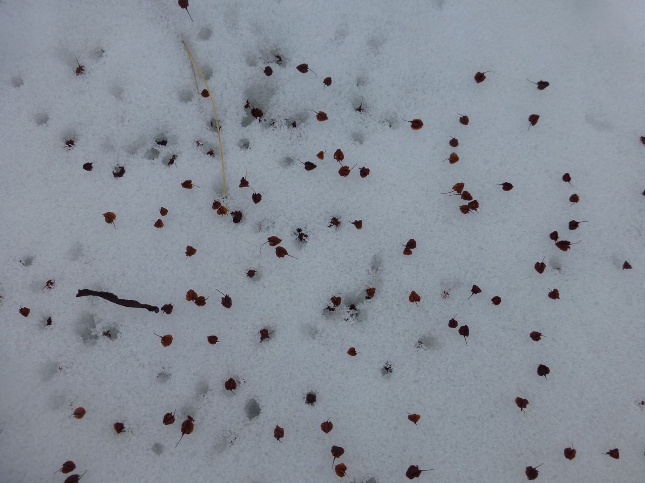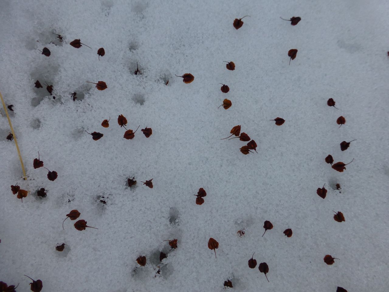 P1180121There would be no absence. And it’s not just the sumacs. The same applies with these yellow dock seeds, catching the sun and using its heat to sink themselves through the snow to the warm ground beneath.