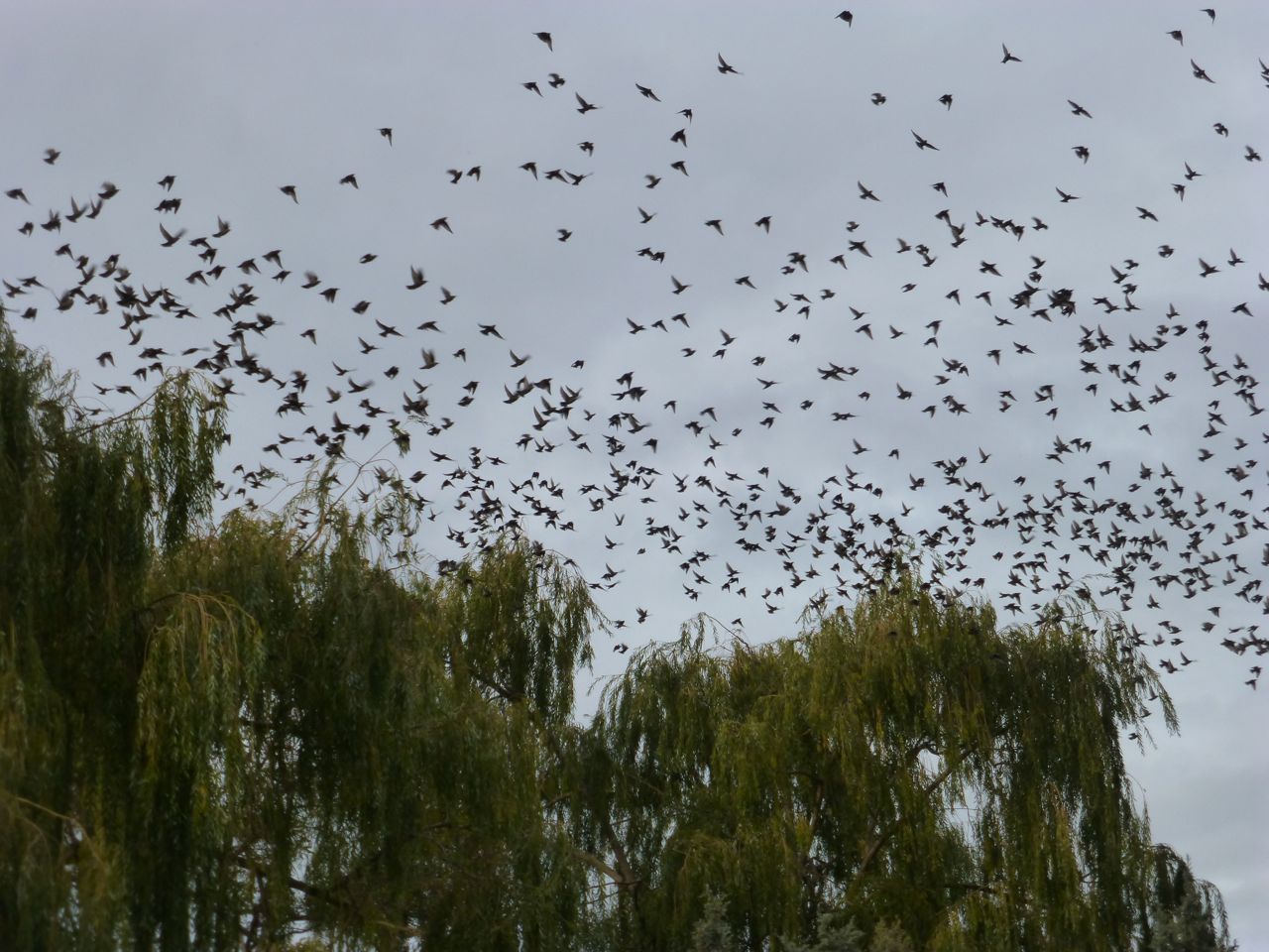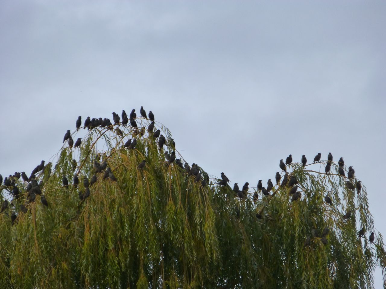 One version of the theory of evolution holds that it’s all survival of the fittest, that there are predator species and prey species and it’s nasty out there. I dunno. Look at these starlings again. Look at that weeping willow again.