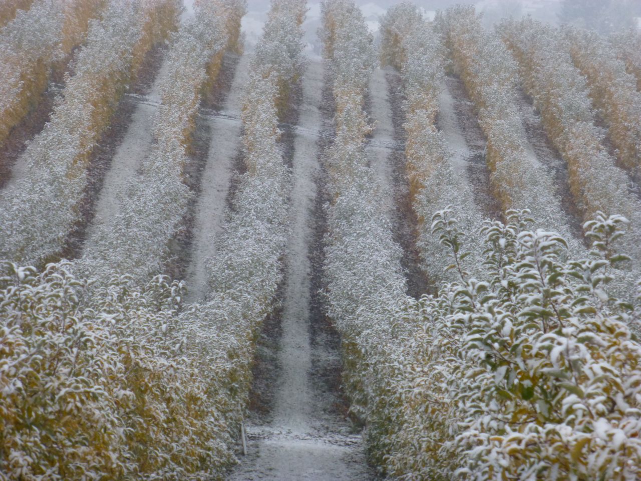 The provincial government pays up to $2.50 a tree (20 acres …2000 trees to the acre … whew!) to subsidize the planting of Royal Gala apples such as these, to counteract the effect of national government trade treaties with the United States. To which, we might add: