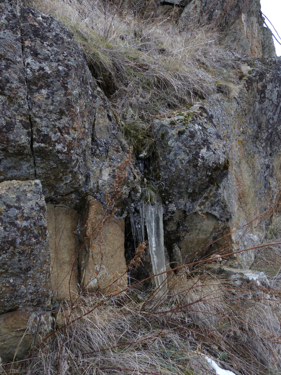 When this landscape was covered with glaciers, there was no inhabitable space for cacti here. They moved over time, most effectively by a) gravity and b) animal transportation (ouch.) They established themselves when heat conditions were right. They are, in other words, indicative of complex relationships between heat, cold, water, animal life, and atmospheric pressure, among others. These things are traditional lumped together under the term “ecosystem”, but what if that were re-termed: “ecological organism”, and set beside the traditional term “individual organism”? Would that not deepen our understanding of life, rather than diminish it? Or, put it this way: currently we have individual organisms, filling ecological niches within ecosystems, while within those organisms we have defined molecules filling hydrocarbon niches within replicable DNA strings. Is there really a difference? Might they not both be life? Maybe. One of the definitions of life is that it is self-replicable. Here is the seed head of an arrow-leafed balsam root, holding crystals of lake that have condensed out of the air.