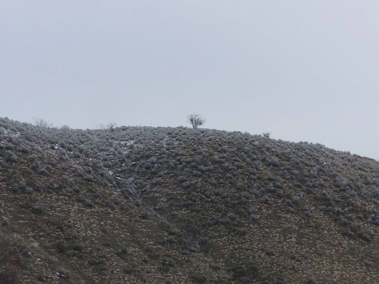 Hint, take a walking stick. The deer have made some slick trails up there by stomping on the snow. Note the saskatoon bush, because…