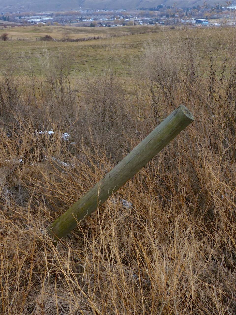 The fence, and the barrenness of the land (a few species of grass) are called improvements, because they represent the point at which the land has been made into a human artifact. Before that, it was deemed to be “unimproved” and nearly valueless. The “improvements”, such as the fence above, are written down against their capital cost until they have no value at all. After that, the land can be improved again, with a new fence (The post above is from one of these second generation improvements.), and the whole cycle of transforming human debt into wealth continues again. The only thing is, the economical calculations miss the actual source of the wealth here: life, drawn from the sun. The small amount of hay cut from this field has a debt to pay, not to bankers and investors, but to all the species, and all of their energy, that was written off to remove this land from natural production. That is not only an energy debt, but an ethical debt as well. One of the neighbours is dealing with it in his own way: