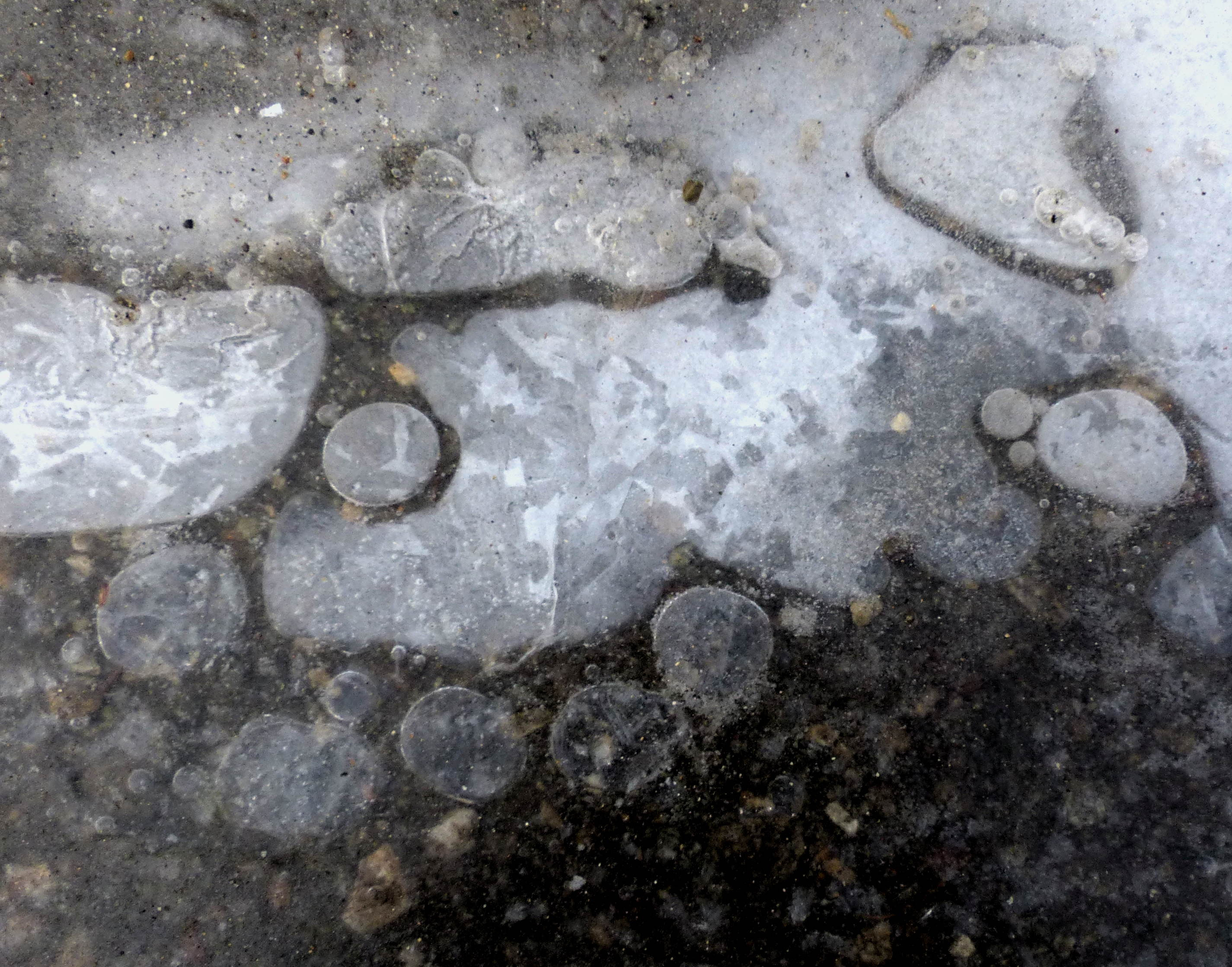 Life is an arrangement of energies and tensions.bubb2It helps to slow them down, as the ice in this roadside puddle did overnight.