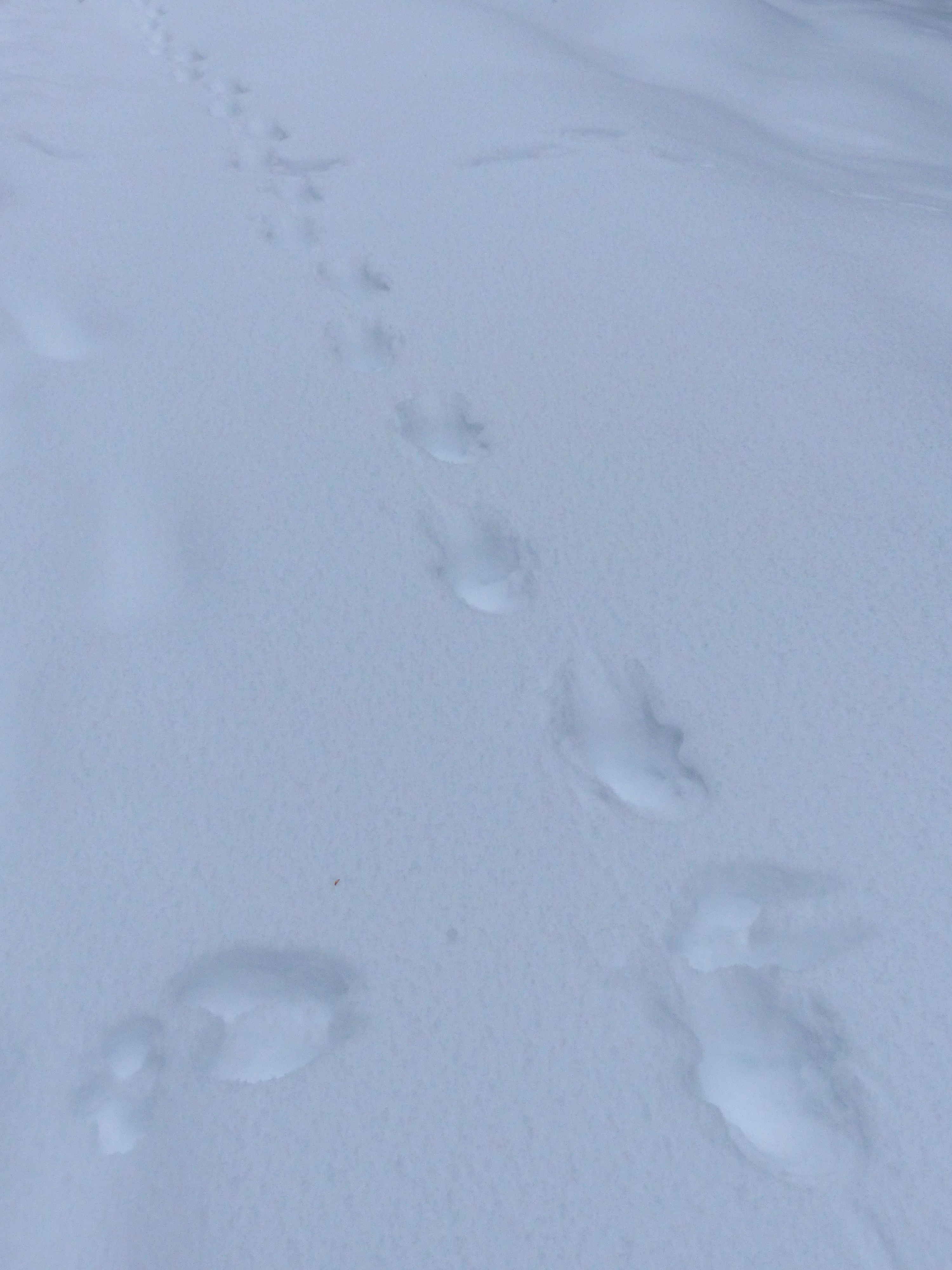 Here’s what the land looks like without the rocks. Those are the prints of a snowshoe hare.