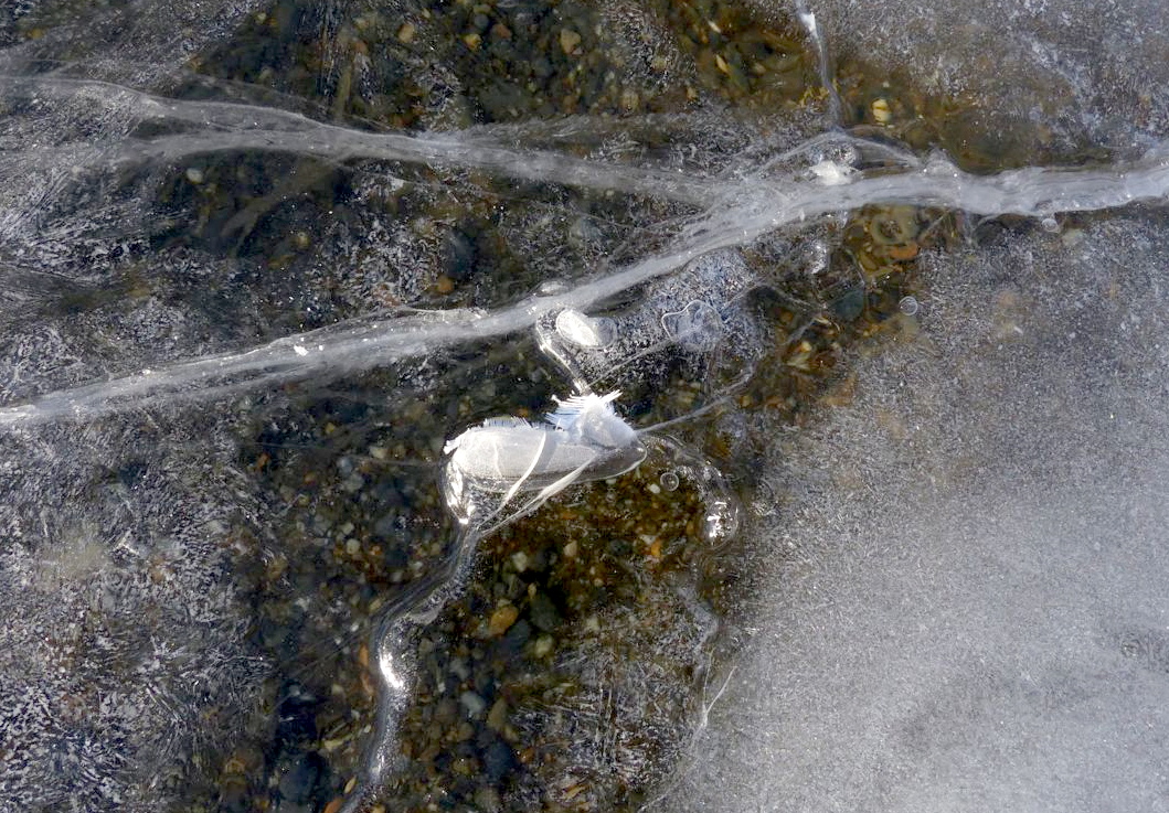 Of course, then there are geese. Here’s some ice that resisted freezing for awhile because a goose was sitting on it.