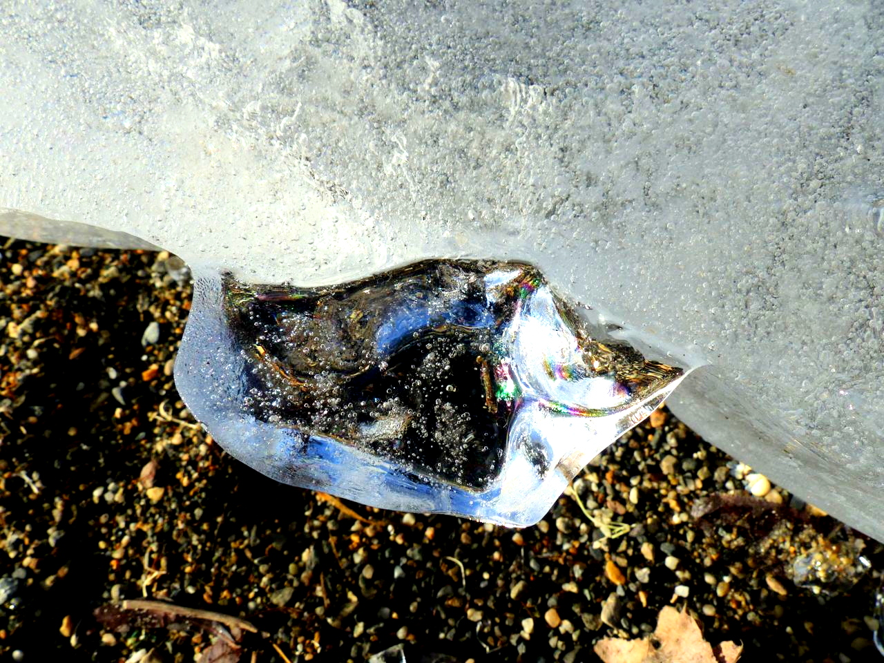 The rainbow on the right of this chunk of ice illustrates the prismatic effects of Newton’s science of light. For sure, but what if this ice, battered by the wind and the waves, frozen, thawed and refrozen many times, is a prism of a different kind?