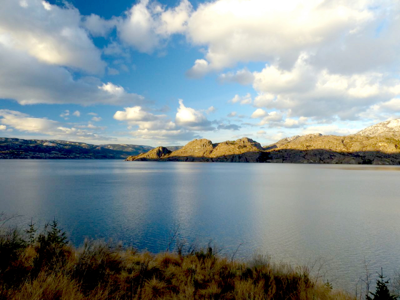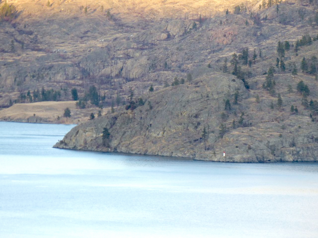 Take a look. This is N’ha-a-itk. Maybe you’ve heard of this creature from the time when all people and the earth and the creatures were one, through the lens of a little colonial linguistic derision … the Ogopogo of legend? I was across the lake from the N’ha-a-itk a couple days ago, in such glorious light that I had to stop. I wanted to call out to all the people in all the cars roaring past this old plantation to stop, that wherever they were going was of no consequence compared to this light here with the N’ha-a-itk, but they seemed pretty intent on driving on by, and what could I do? Get arrested for looking crazy? That saddened me. The day was joyous, and, I tell you, the light is turbulent here and rarely as amazing as this, turned orange by coming in immediately above the peaks just before a winter dusk.