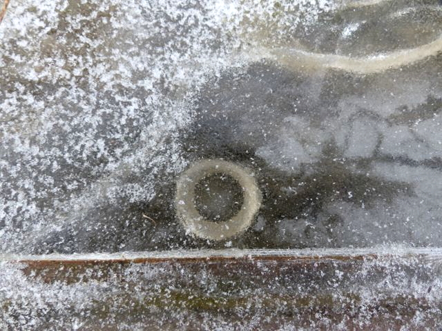 At first glance, it’s a few cat tail rushes buried under ice and covered with a skiff of snow. Or maybe that’s at fifth glance, or something. I don’t really know.