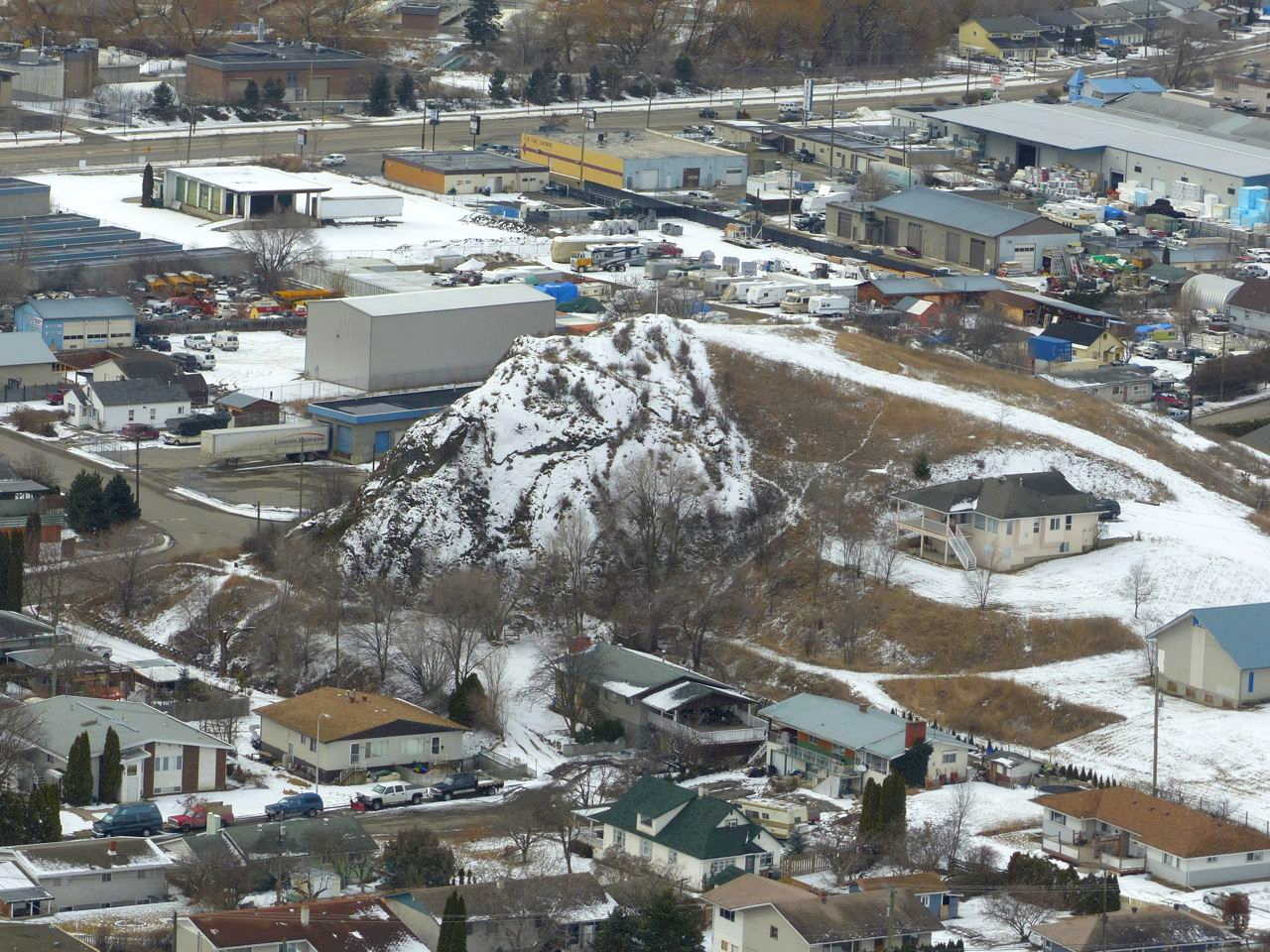 This character in an ancient story about social equality, which is written on the land, is surrounded by a very non-Middle Class neighbourhood. This, by the way, is what the middle class subdivision of Turtle Mountain looks down upon.