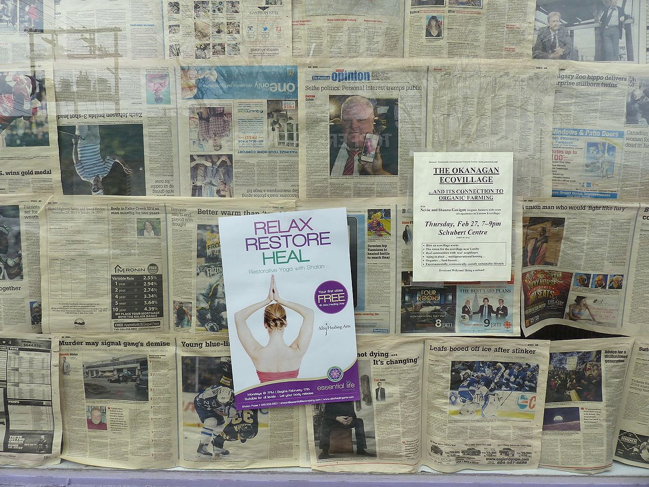 Now, this cultural aesthetic has another manifestation, among the young (ish). This is Justin Trudeau’s demographic. Here’s a downtown business in Vernon, British Columbia, in the process of a remodel. That doesn’t stop a bit of irony from creeping in …