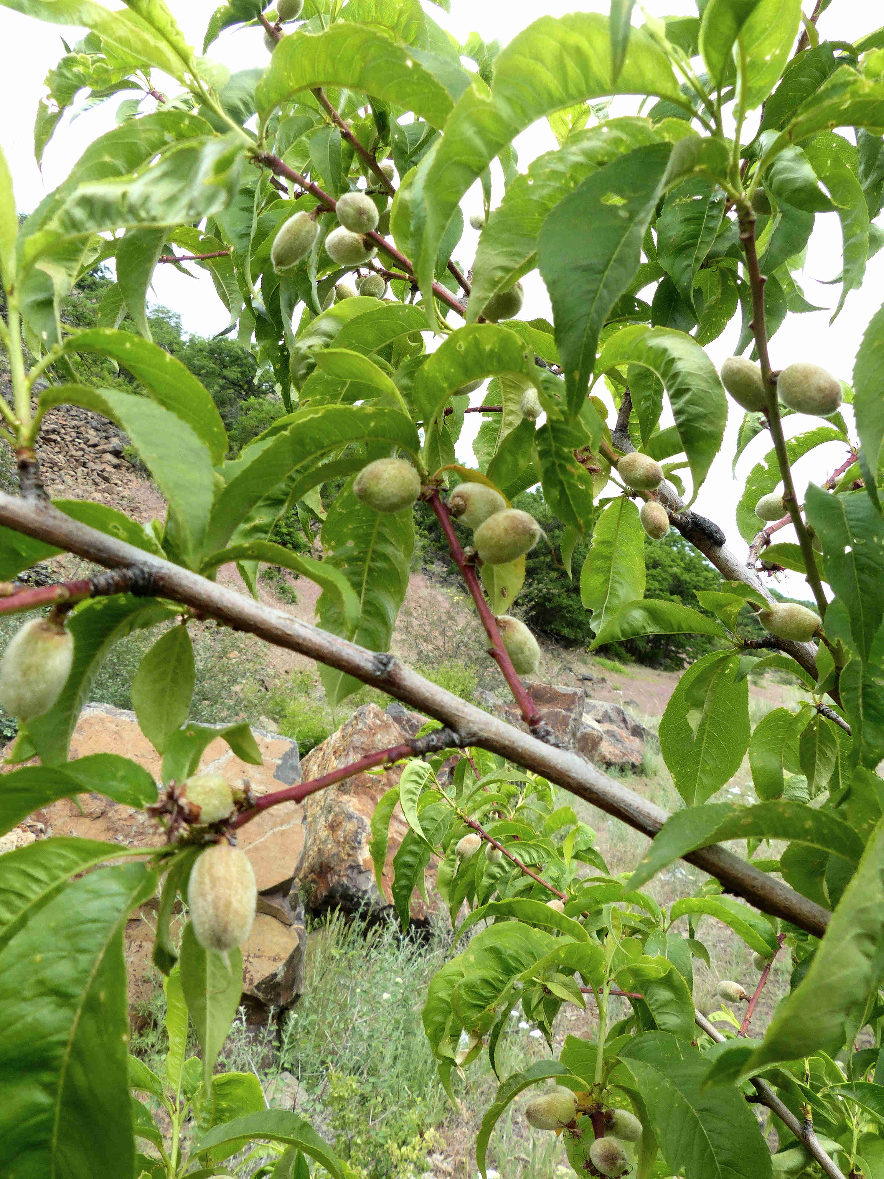These infant peaches look so much like almonds when in their furry outer husks. Sadly, I won’t be anywhere nearby to eat a ripe peach and bury its pit farther along.
