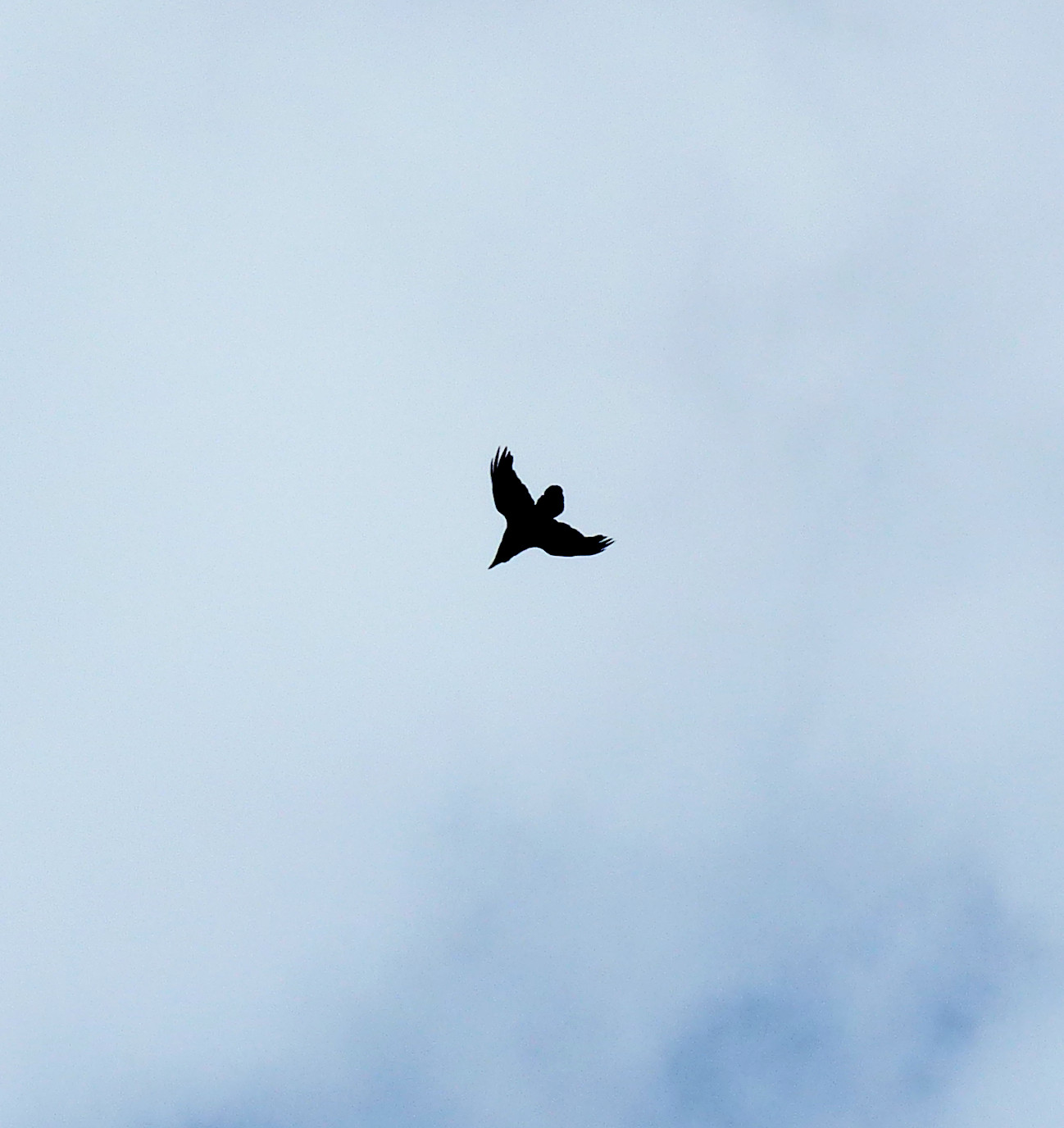 But for a raven, conversations are in circles, and since they’re all done in breath, that part doesn’t have to be laboured. Instead, there’s a rhythm, between power thrusts and the gathering of power. It’s the wings that drive the lungs and punctuate the words.