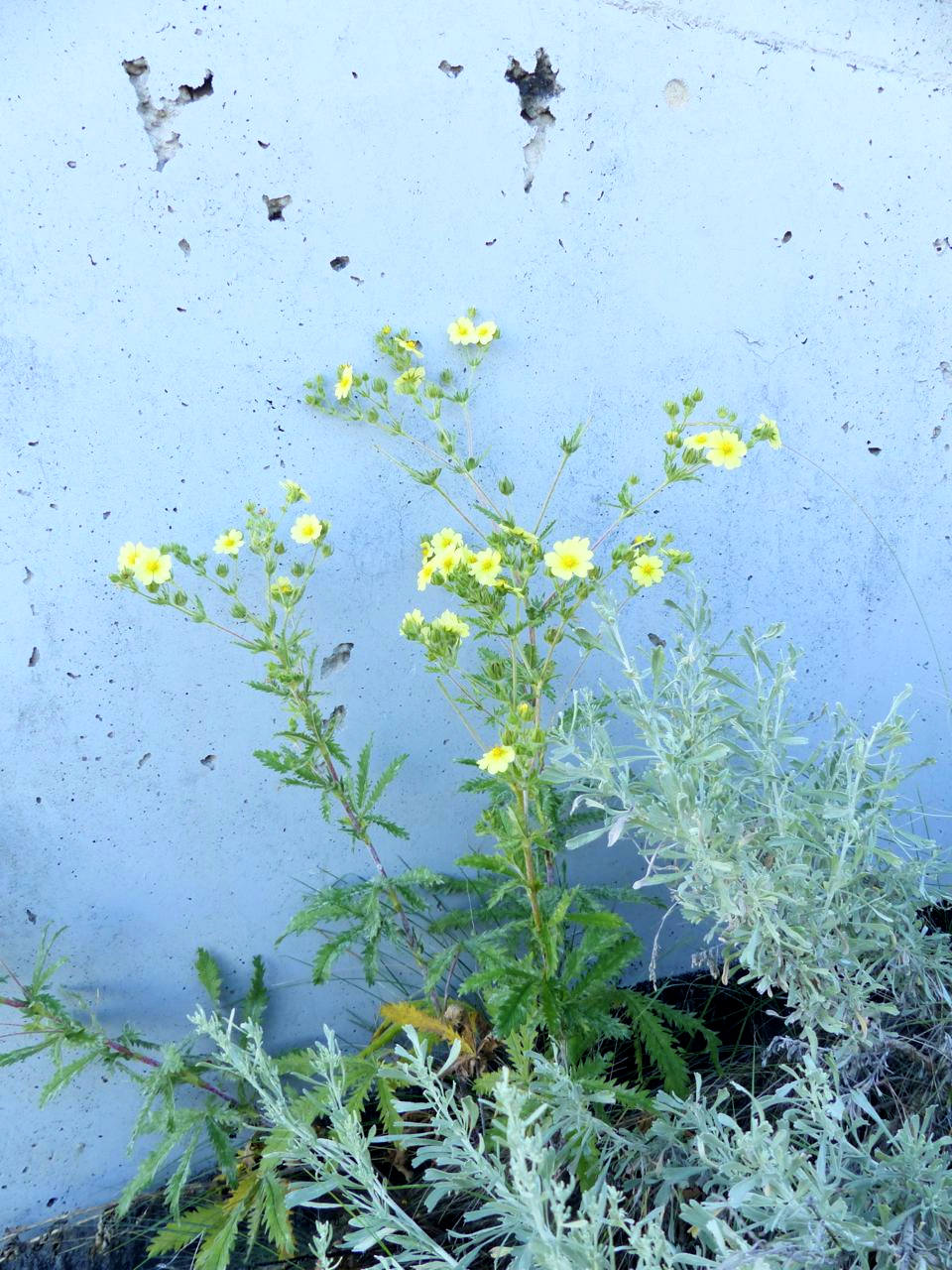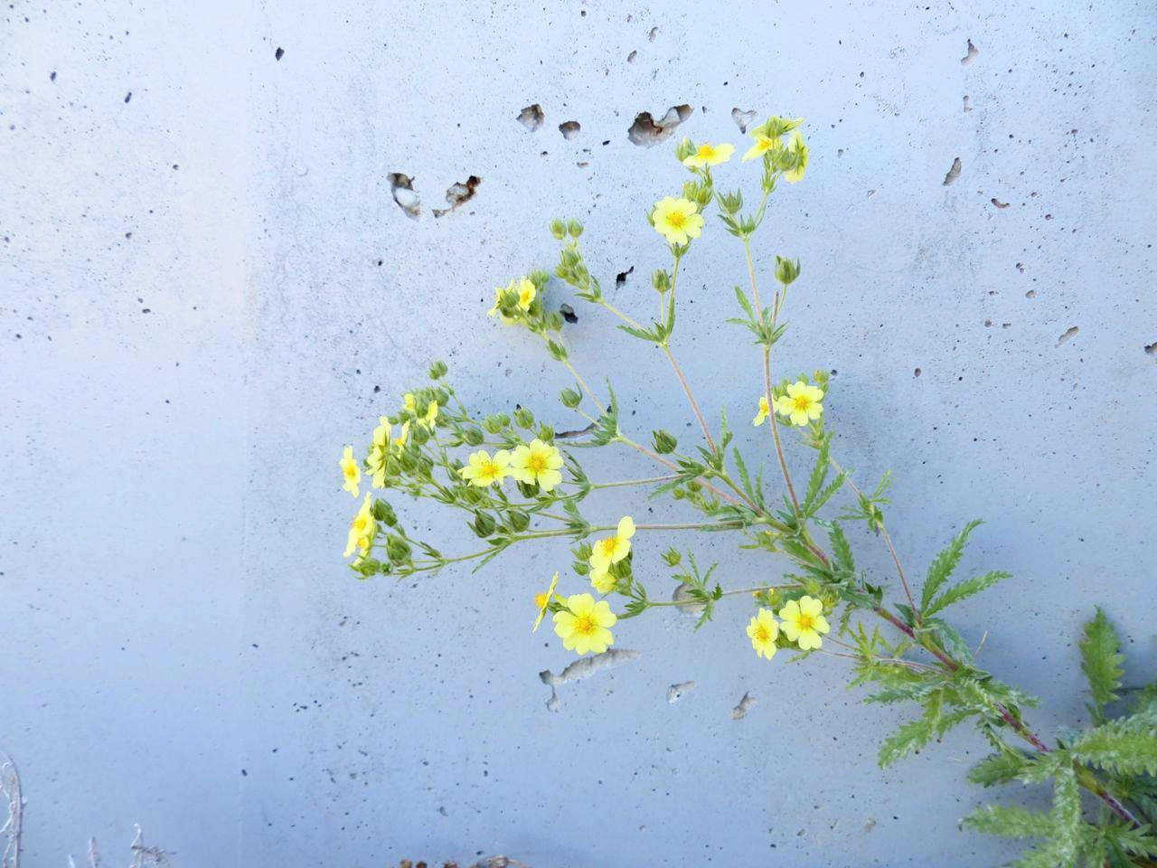 Sulfur Cinquefoil Graffiti (government owned electrical substation wall)…P1380505 And with a little help from her friend Sagebrush…P1380506 Wild lettuce graffiti, too!