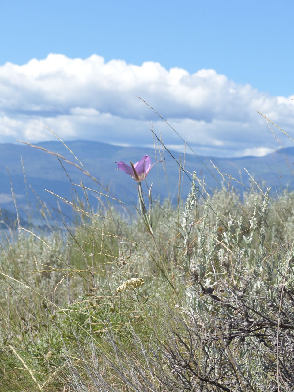 The Canadian stretch of the Okanagan-Okanogan is not just the northern tip of a vast intermountain grassland created by the pressure effects of wet air being desiccated on its rise over the Coast Mountains and the Cascade Range to the west, or an endangered environment with aboriginal land abuses stretching back into the 1890s, or even the heart and soul of its children, like me, or like this mariposa lily above Okanagan Lake in Vernon…P1390561