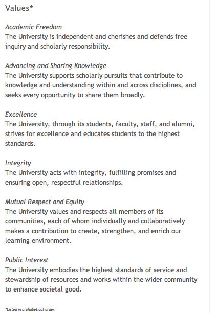 One of the world’s leading universities! I wonder if the Sorbonne engages in the kind of neo-colonialism practiced by the alumni association. I wonder if the Oxford University is showing 1980s American movies with deep Disneyland merchandizing links to bond its current students with its former ones in a larger intellectual community. I wonder if Berlin’s Humboldt University is showing Sleepless in Seattle to showcase its intellectual strengths and achievements or to anchor itself deeply into German culture. The concept is absurd. Here, apparently, it is not. Luckily (or maybe not) the university has values (whew):