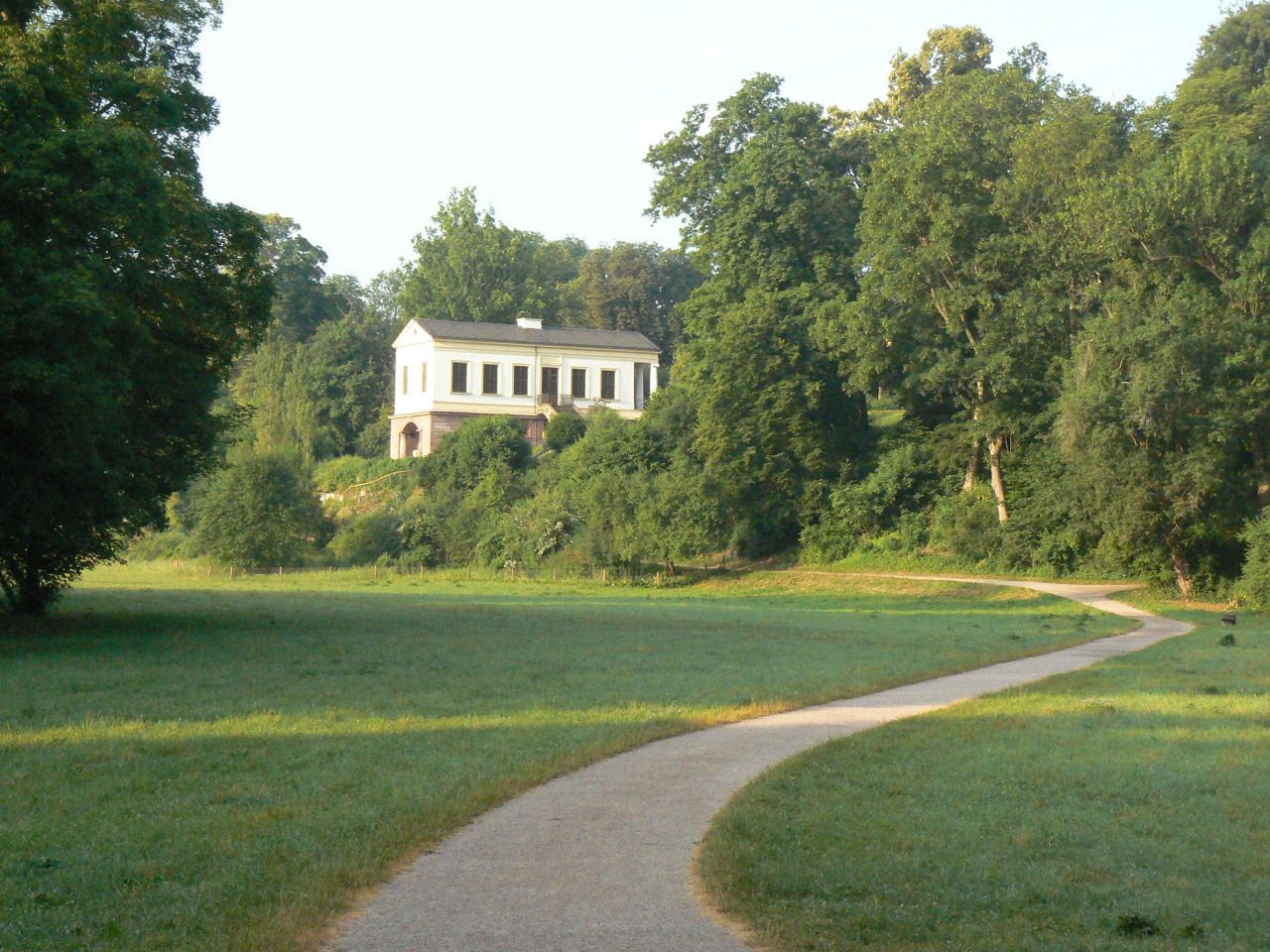 From an aristocratic perspective, Secretary of State Goethe has a perk, a kind of country estate in a park he constructed out of a collection of water meadows on the Ilm River. From a modern perspective, though, Goethe installed himself within the park as an embodiment of the spirit of the state, right in the middle of a refined version of this: