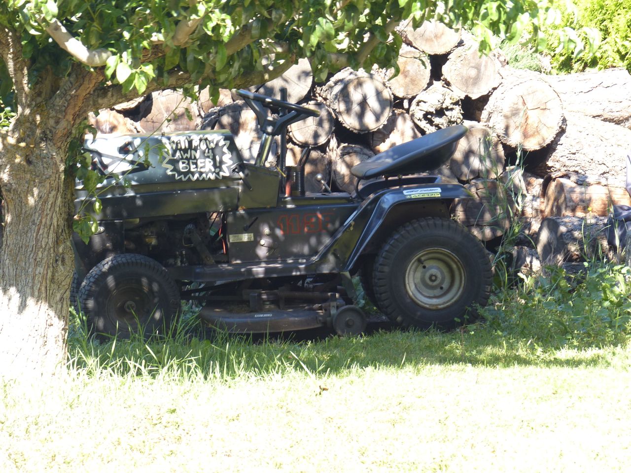 A British Columbian demonstrates his English heritage. Note that this mower has not moved in 3 years.