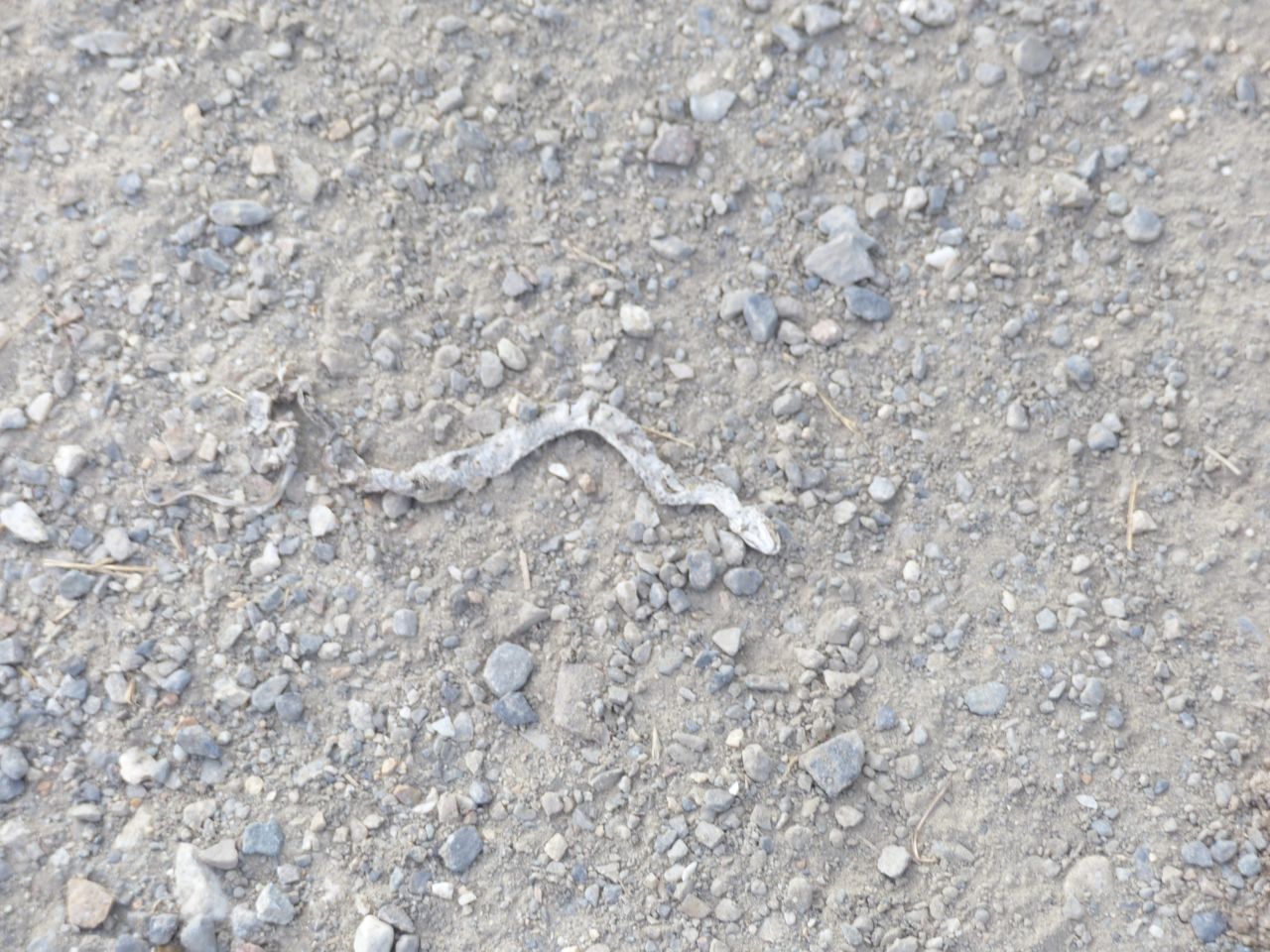 (Poor little baby bull snake meets the Seasonal Foreign Worker Program at the exact point at which it meets a vineyard road wider than most highways in most countries. Such freedom of movement! So seductive! So deadly.)