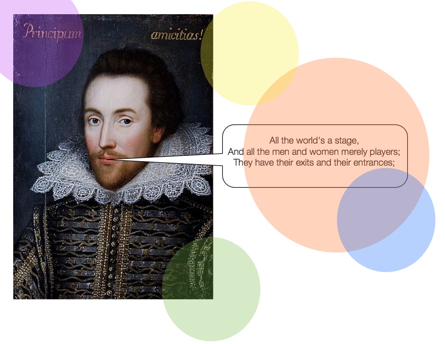It’s awfully handy. The passage, too. It displays a mighty fine bit of Shakespeare, and that carries a lot of cultural weight, but, well, you see, if the world were a stage, in God’s mind or even in the minds of men, women and children (Shakespeare had all of those in mind by the way), or in the mind, presence or being of this fellow …