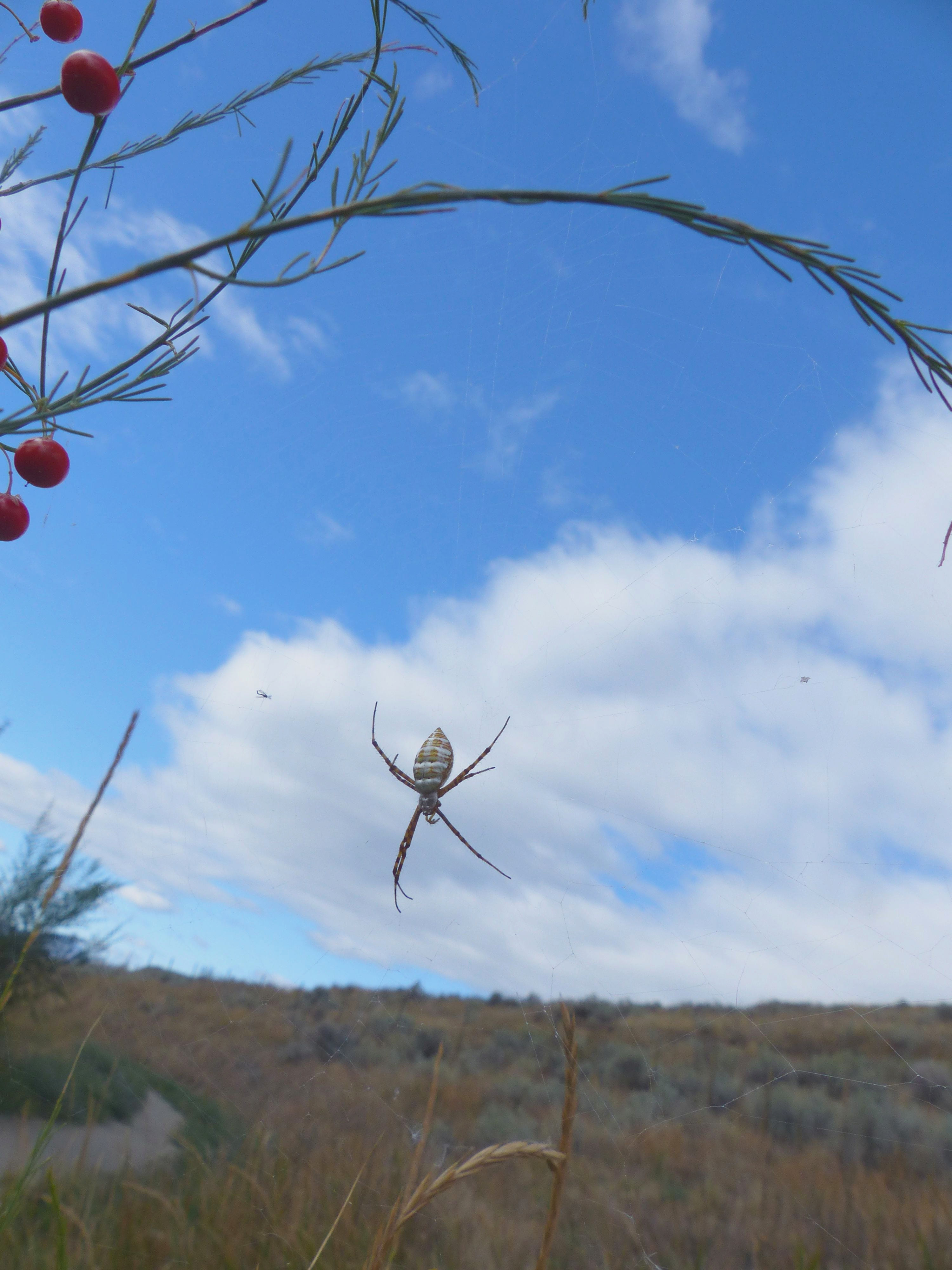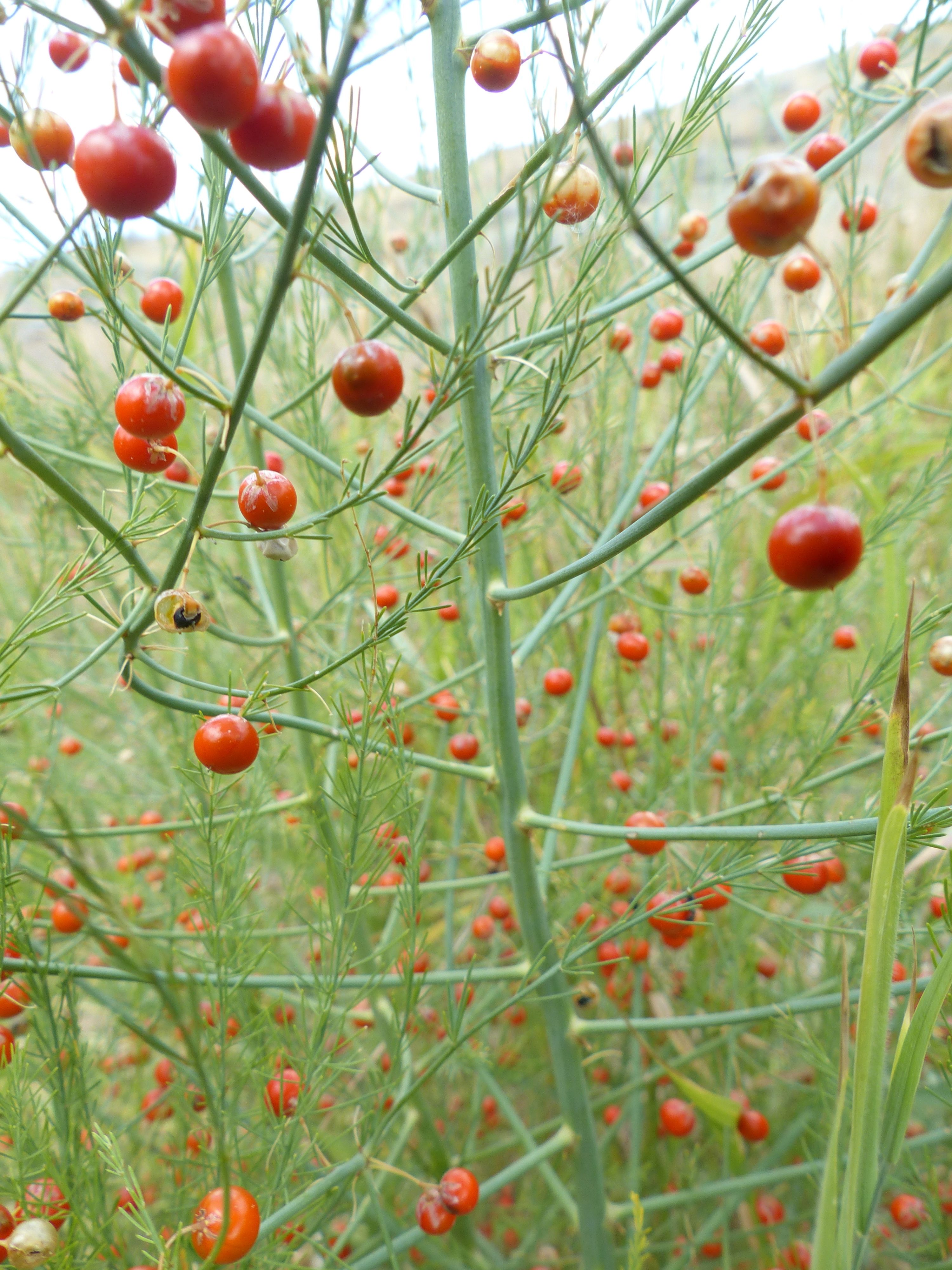 It’s an important point, actually. As humans, bound to time, we tend to see events unfolding along a line, from spring to fall, so to speak. It’s harder to see them opening up into themselves, passing through a set of stages (openings, really) , each of which holds the others in completeness, or at least in complete potential open to chance. It’s also hard for us to see individuals (such as this asparagus) achieving full life by becoming part of a community, as this plant does with its spider and the fly it has caught and the deer that grazes it in the spring (or the poet who cuts off one of its stalks for a spring dinner,) but it’s not that hard. In fact, once you’ve experienced the plant in that way there’s no going back — which suggests that it’s not hard at all. In scientific nomenclature, asparagus is classified, as are all plants, according to its origins, its descent from a primeval form. It could, however, be classified according to its ends, the point at which it reaches in completeness — its ability, for instance, to host spiders and attract the flies on which they feed. That particular classification system might not be terribly humanly useful, mind you. One, however, that classified it by the compounds in its berries might, and might give it such unexpected friends as apples, cranberries, bearberries, and so forth. In such a classification system, the harvesting of young asparagus stalks would not be seen as cutting a crop in its prime, but cutting it in a juvenile stage. The pressure to leave more of the plant for full, mature development would be strong under such a system, and environmental protection would be furthered … by nothing more than a chance of language. This is just one small example of what is possible, and what is currently being ignored. Without it, it’s no wonder the environment is separated from what it needs to survive.