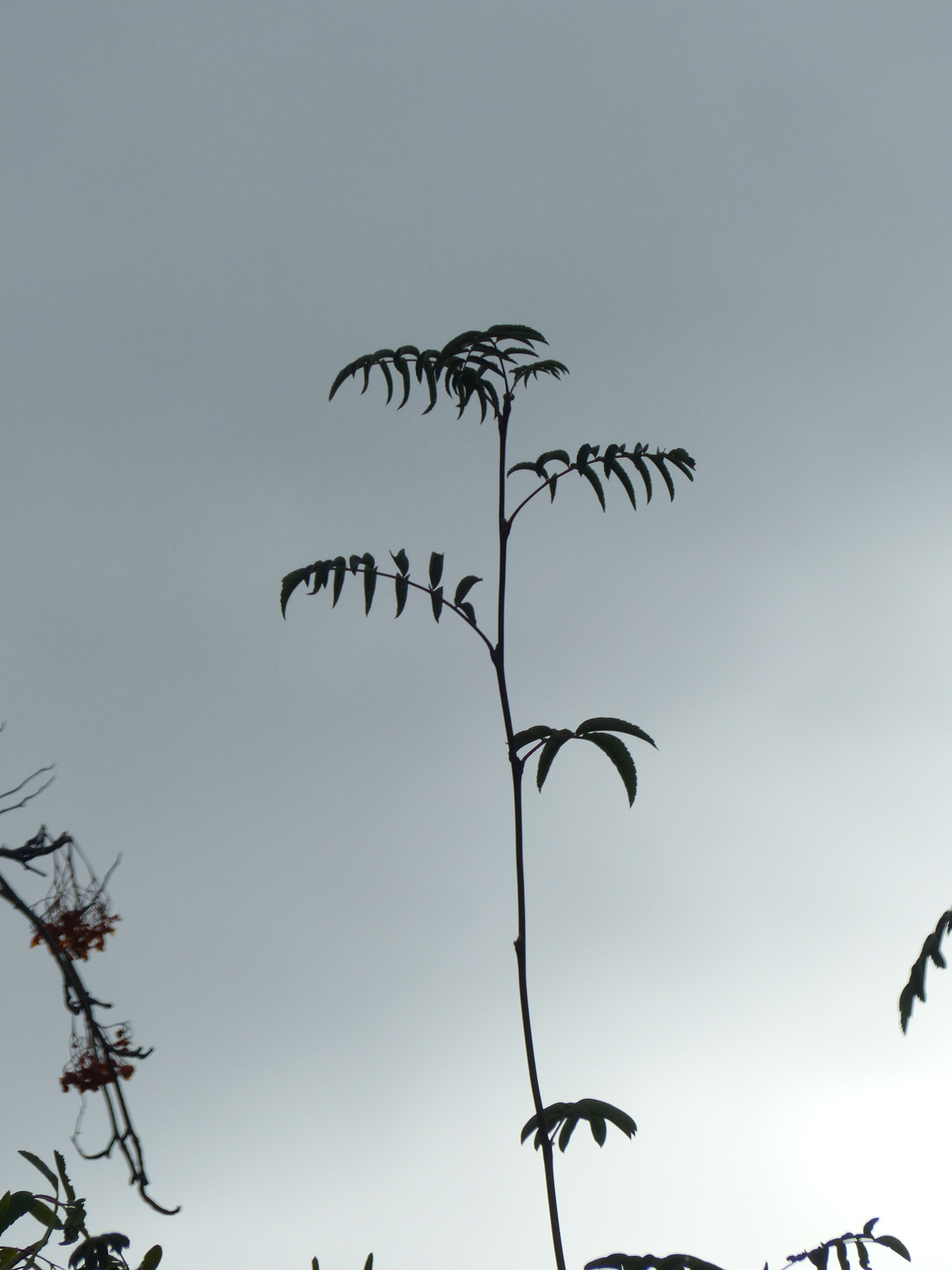 It pays to state the obvious when speaking of the earth with the earth. Notice how the rowan above has leaves that open off of its tip (aka head, stick, stalk, prick or spike). They form about half of the volume of the stalk. They will be shed with the cold.