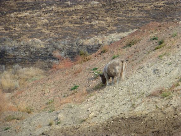 … in this place, even when it comes to this cow, grazing a recently-burnt, long-overgrazed Syilx hillside (a teenager was playing with matches) for the last scrap of life left on it …