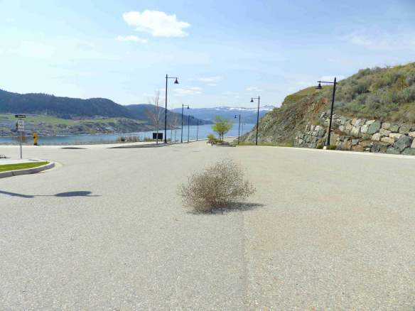 … I was leaving out some details. The grassland that this road was imposed upon nine years ago is not Canada. It is an ancient Syilx medicine grassland. Okanagan Lake in the background is not Canada. It is an ancient post-glacial lake 135 kilometres long. The mountain across the lake is not Canada. It’s part of a mid-Pacific volcanic island chain that drifted across the seabed a centimetre a year and eventually rode up for 100 kilometres over the other (Eastern) shore of the lake (including the dark peninsula in the photo above), in a great volcanic conflagration, before being turned eastward with the slowly advancing continent. As for that dark peninsula and the ridge behind it, that’s not Canada either. That’s an in-grown Syilx grassland. What then is Canada here? Physically, it’s a tumbleweed (an invasive species), a road, a sidewalk, some streetlights, buried power, sewer and water lines, a retaining wall, a strip of grass, a couple half-dead hawthorn trees, and a group of houses and vacation rentals and boat jetties down on the lake. Less noticeably, it’s a collection of weeds and overgrown sagebrush in the over-grazed and nearly extinct grassland, the infilled trees in the grassland across the way, and the clear cut forest (white) on the mountains across the lake. Canada is, in other words, an administrative concept. It is a social thing. It’s a human arrangement for dealing with other humans. It is not, however, the land. It is, as it always was out here in the west beyond the West, something imposed upon the land, and what is imposed upon the land is what it always was: a railroad and the industrial products it was meant to carry, plus the new immigrants it has brought here from around the world, to further the development of those industrial products. Now, by industrial products, we mean stuff like this: