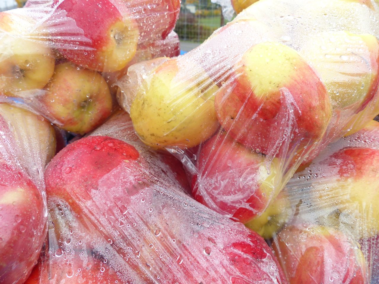 Apples for sale by the bag.P1550110 Looks nice, huh! Look more closely. Here are some Ambrosias.