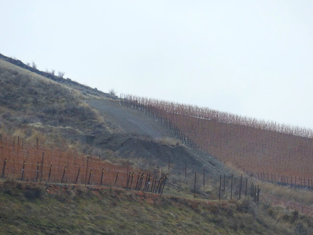 It is possible to change the world. You can start out with a landscape in which the strategies of plants to capture water, air pressure, gravity and evaporation join to stop water in its tracks, or at least to slow it so that the low atmospheric pressures of the winter sustain plants in the high pressures of the summer when water enters the air and vanishes. You can, though, change all that. It takes a bit of time, and a lot of money. You can see this process in action in the image below. This is a vineyard in the Okanagan Valley of British Columbia in the winter. There should be snow at this time of year, but it melted and won’t come back for a week. Take a look.
