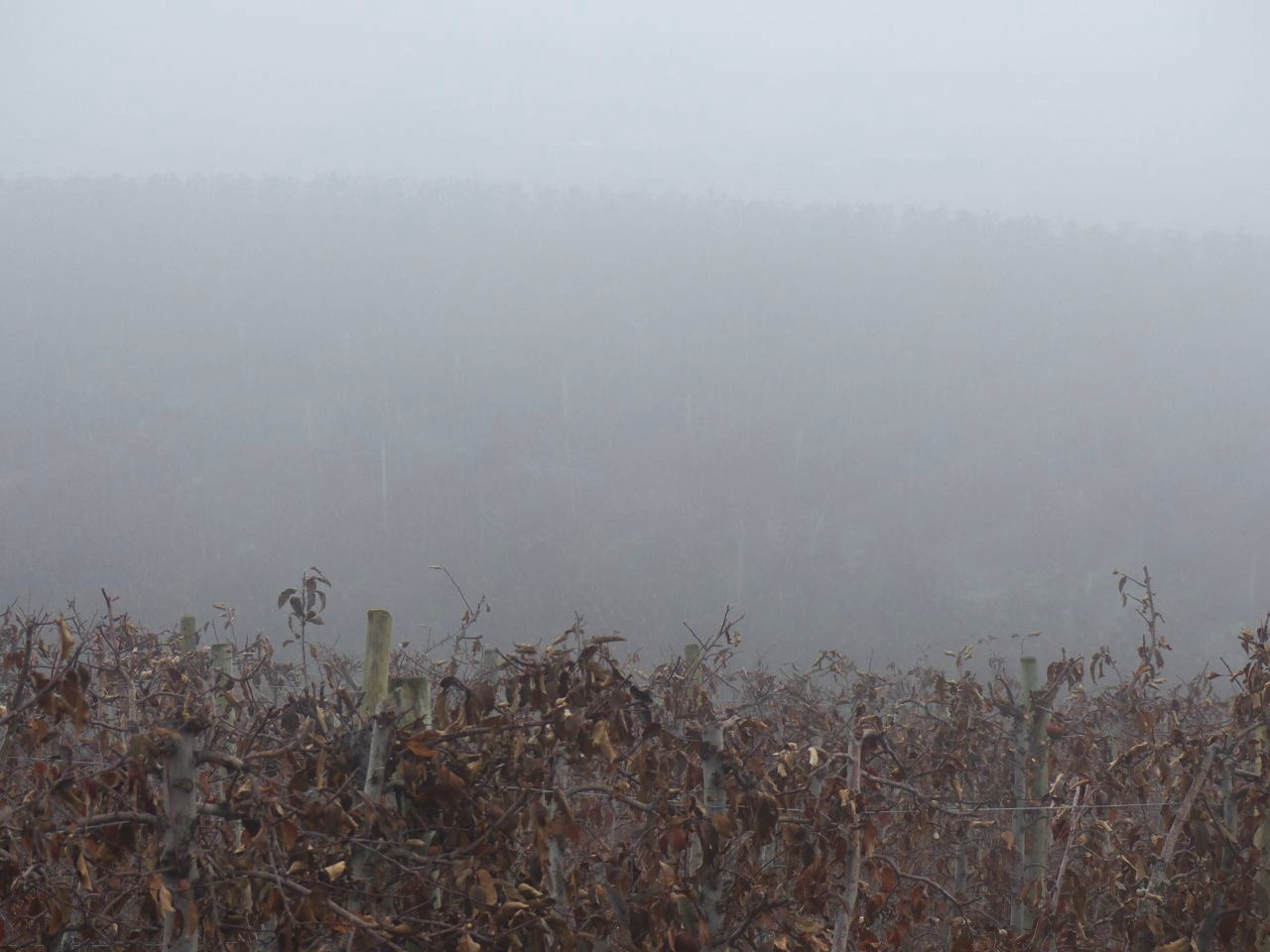 When the Okanagan Valley was a grassland, it was cold in the winter. The grass stretched up to the high country forests. In the valley floor, orchards were planted, then cities, and now there is no grass. The orchards and vineyards captured heat from the sun, and warmed the grass. Now the snow is sleet, drifting through apple factories that were once orchards full of trees growing out of grass. It melts as quickly as it comes, and if it stays on the ground the densely packed trees melted it away. We like to blame the oil patch, though. They have their share of global warming. This is ours.