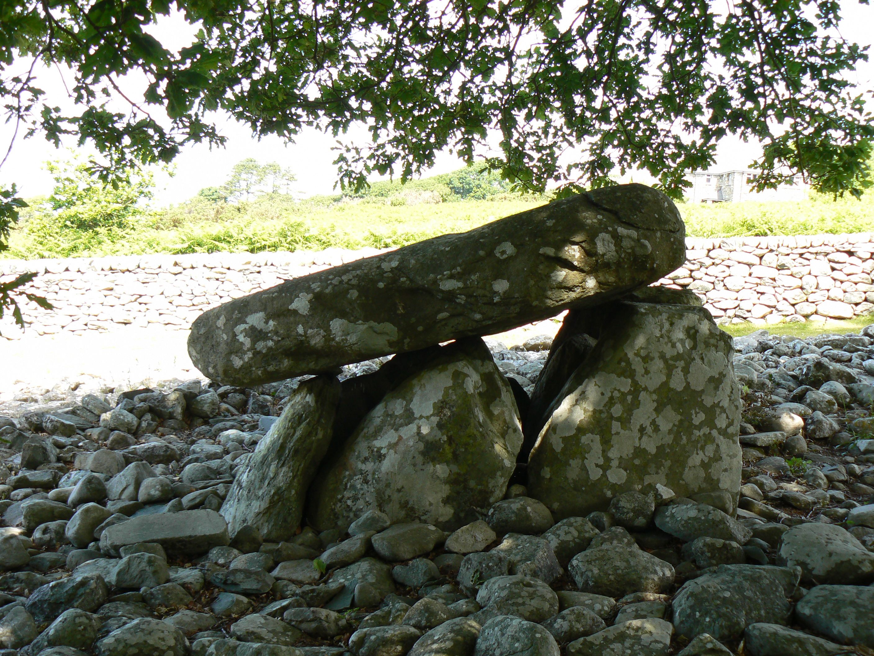 The dolmen is thousands of years older than the tree. It has a lid, to keep out the rain, I guess. Like a tree. It’s rather held up like an offering, too. By its friends. Nice.