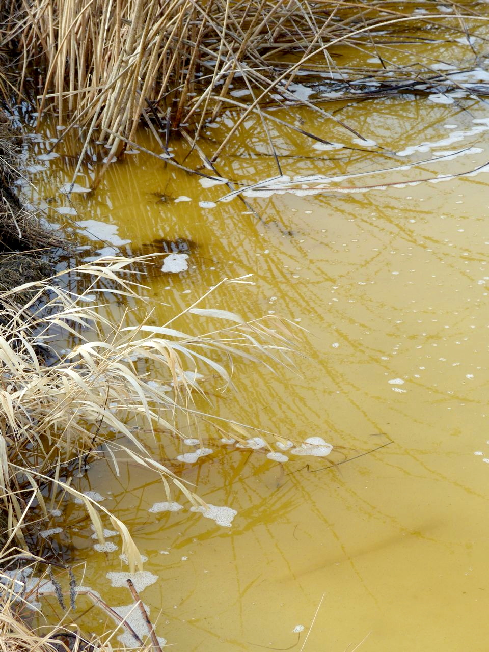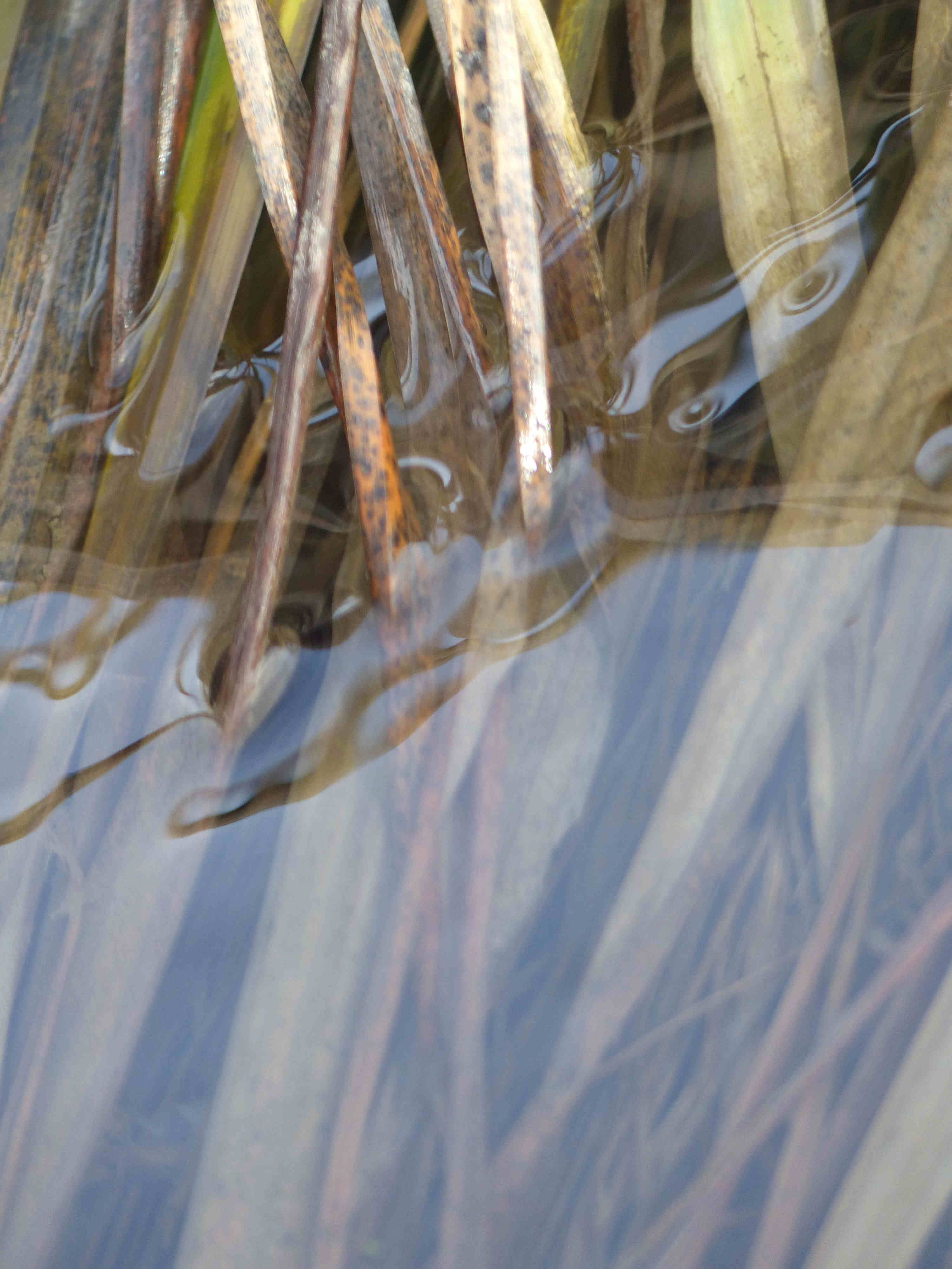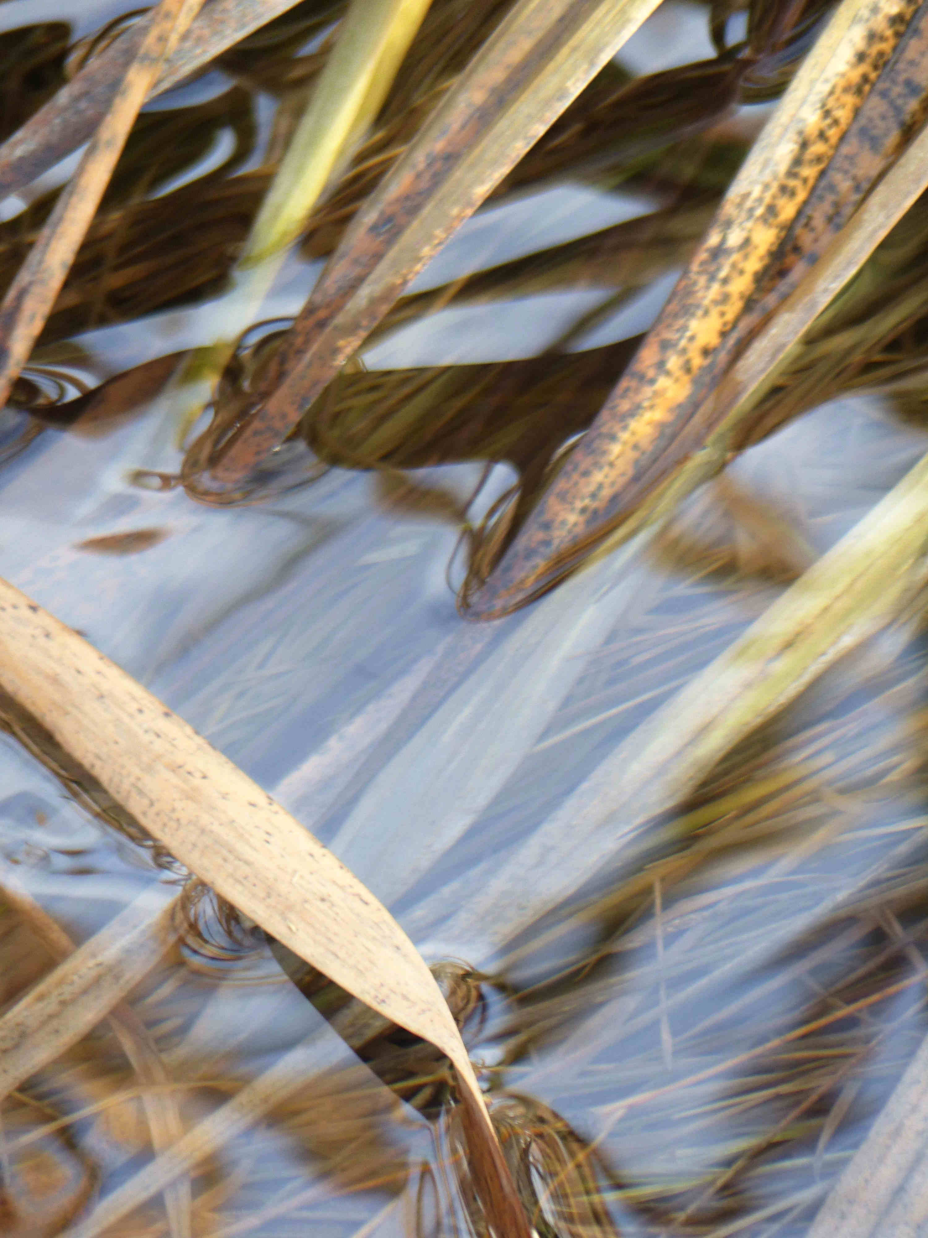 The life in the water is the shapes of the rushes, sedges and grasses, tall in the wind, and stirred by the wind, as it twirls the stalks, and gravity as it draws the water onward …