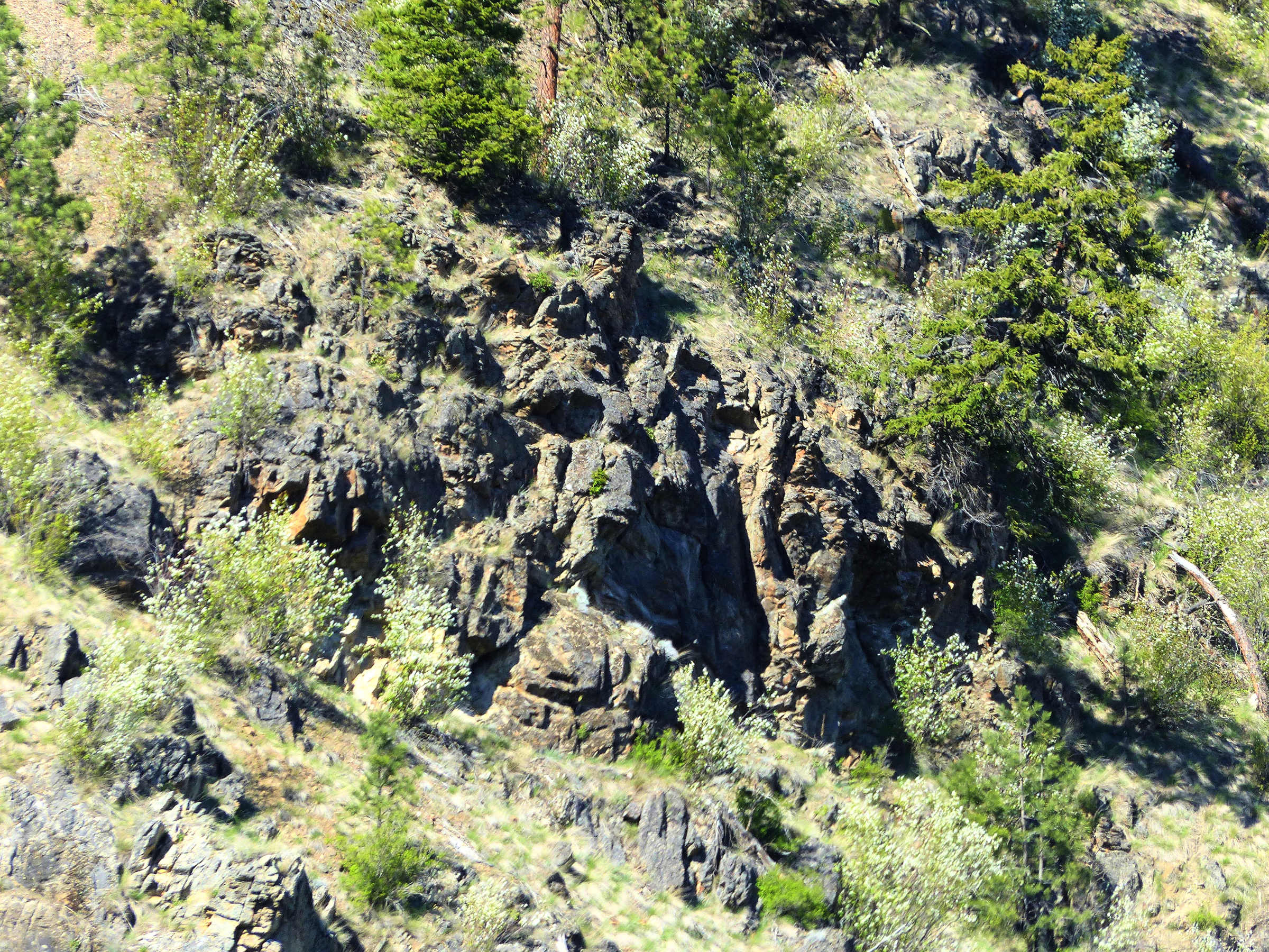 I went out to Kalamalka Lake the other day, as part of my exploration of how to read the land, a bit sideways to dominant cultural norms, but hopefully in a way that can lead us closer to the earth that those norms find continually elusive. Here’s what I was looking at, above the lake: a bit of volcanic burping, gouged up by a bit of glaciation an 10,000 years of weather and gravity.