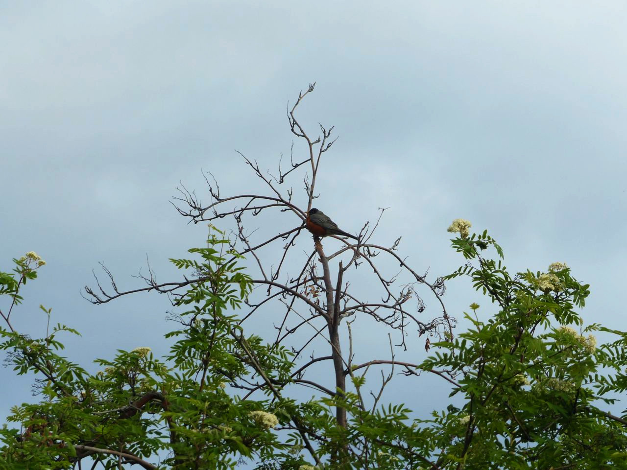 Someday the rowan berries are going to be ripe. Until then, there’s a robin waiting, still, as he was at first leaf.