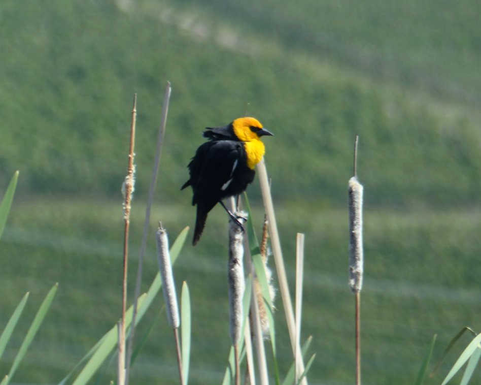 … and his family need those insects. Deeper into the reeds, the yellow-headed blackbird needs them as well.