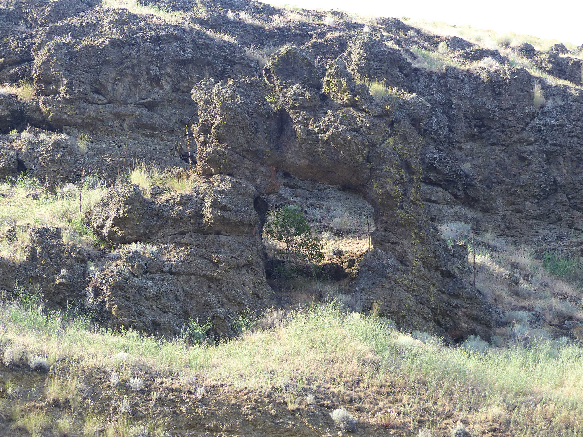 Ah, Yellow Jacket and Ant had a fight long ago, and just would not stop, no matter how much the trickster Iceyeeye (Coyote) tried to get them to stop. So, in frustration he turned them to stone. The Nimîipuu set up camp below them and stayed for 12,000 years. The area of the arch from 9 o’clock to 5 o’clock is the wasp. She’s biting the ant’s neck (Ant is from 6:30 o’clock to 9 o’clock). The story is a warning against greed. Here it is: click!P1870919
