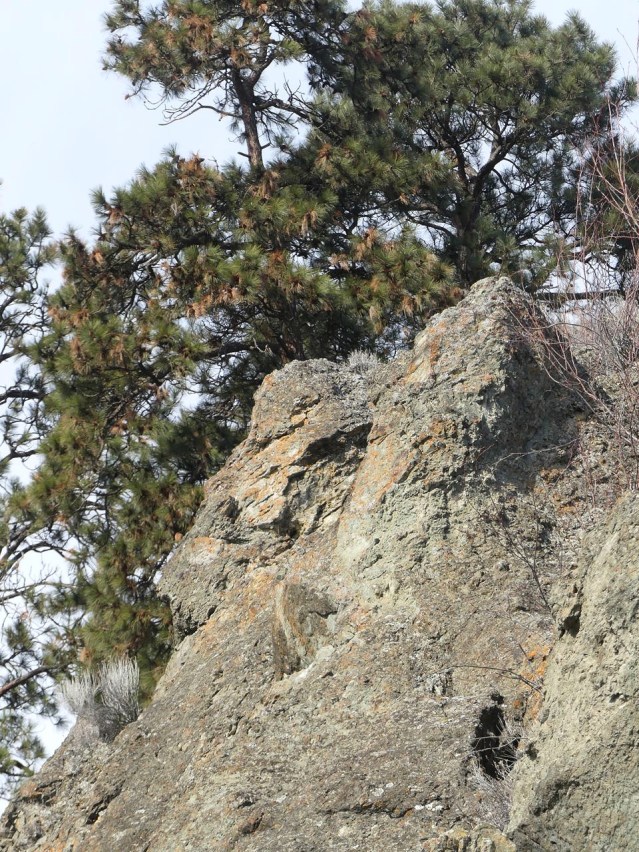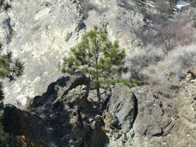 They follow the only possible trail. Perhaps you see the stone fish below. Perhaps you see an escarpment.It means something when a pine enters a story like this and stays for a few hundred years, or humans enter it, as they once did, as we all do, and stay for thousands of years. The story is still there, whether it has human shape now, or not.