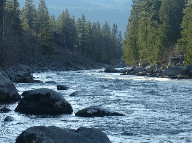 This is the impounded river: a chain of shipping locks full of southern, warm water salmon-egg-eating-fish.