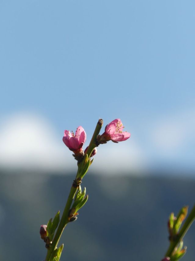 Peaches are scrubby little bushes from the Gobi Desert, that live to be fifteen years old, more or less, before they succumb to their many fragilities. Here’s one I’ve been caring for twenty years, after another man cared for her for nearly twenty before that. A quarter of her sisters have died, but a week ago she was the first one blooming this year. Her name is Glohaven.