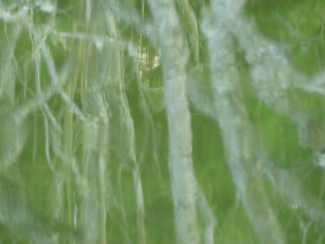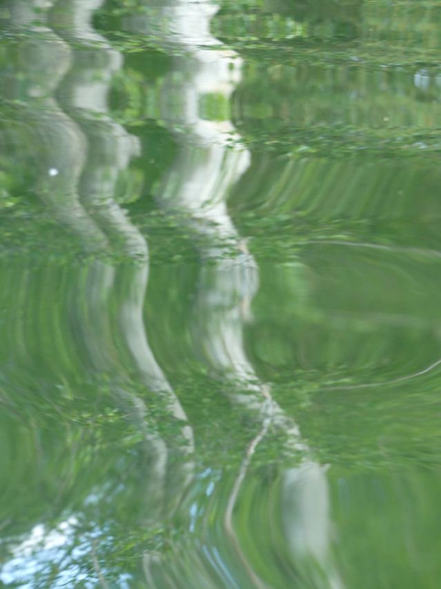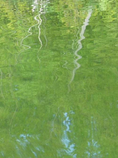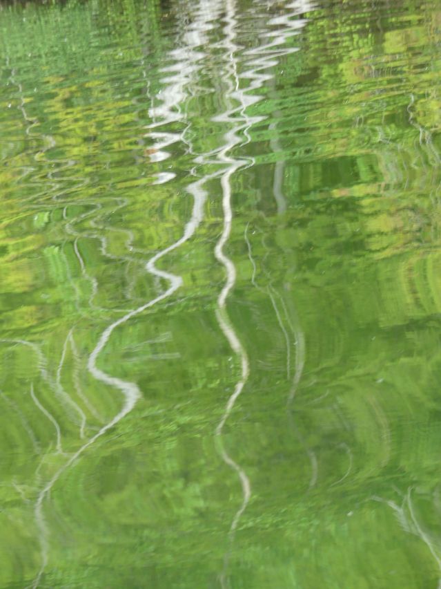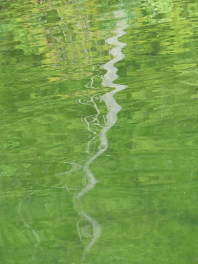 The water showed the directionality of the sun, the coloured space that was blue from one angle, green from another, and from another all gravity and tension.