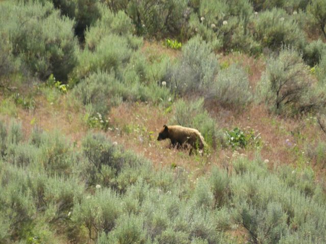 I showed you this image of the bear I spooked out of the mock orange the other day, but it bears (ha ha) repeating in this context, because that’s not a natural landscape it is walking through. It is, actually, something much like this: