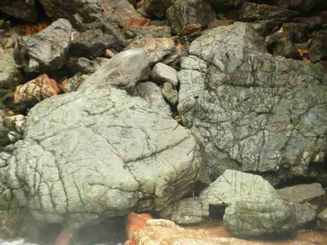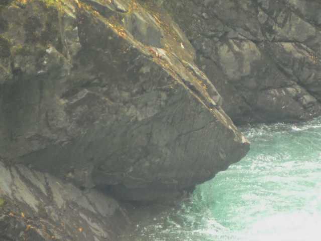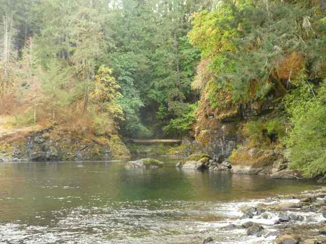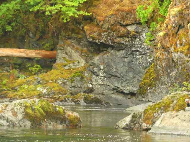 There are ancestors here at Vancouver Island’s Stamp Falls for many animals, and many combinations of animals and people. The human, fish, and animal morphs above, or the big cat and human morph below. For instance.